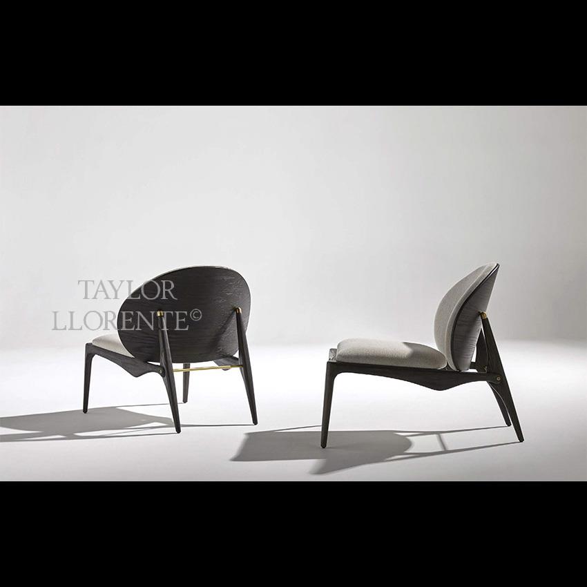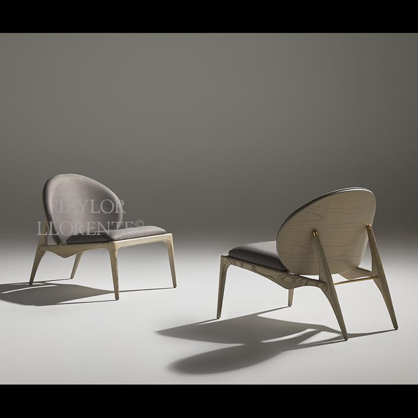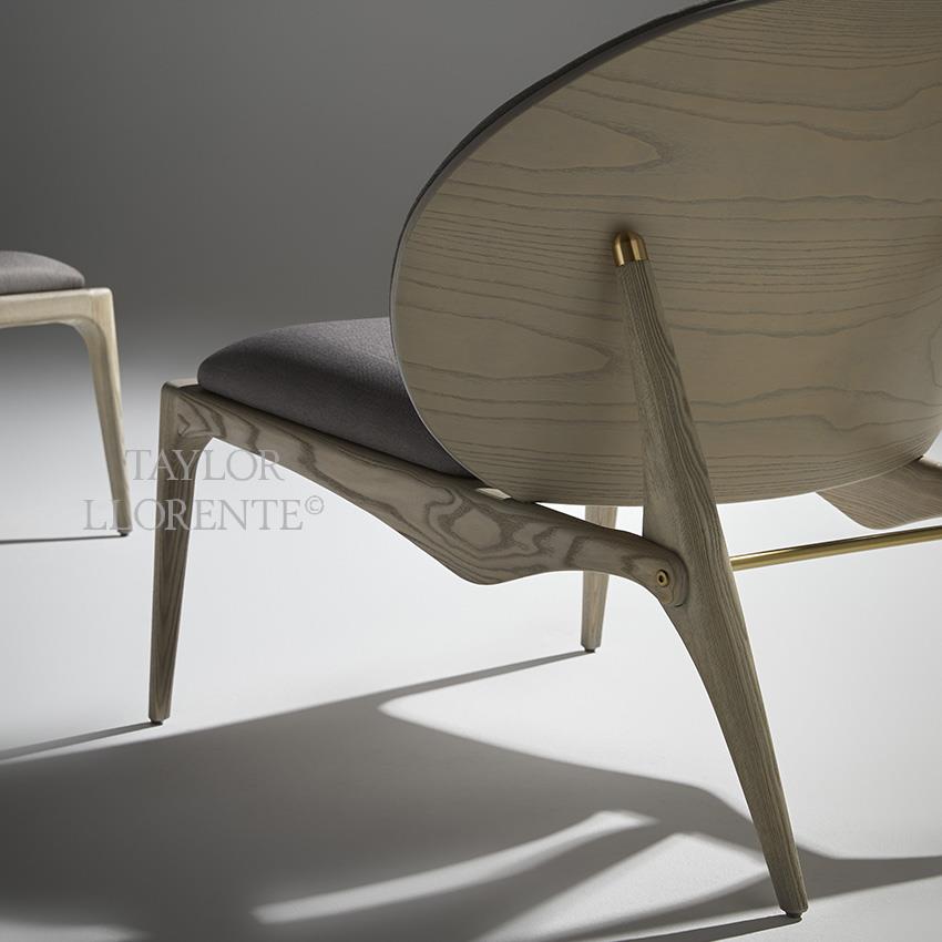 A contemporary designer low accent chair with bold design frame in luxurious Ashwood with upholstered seat and backrest.