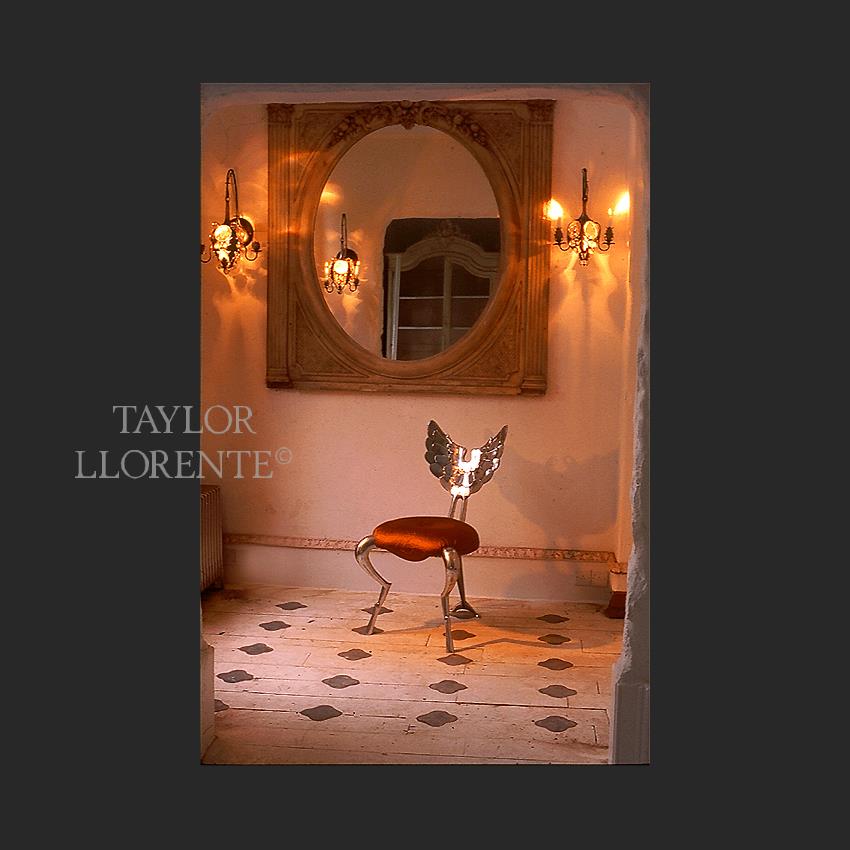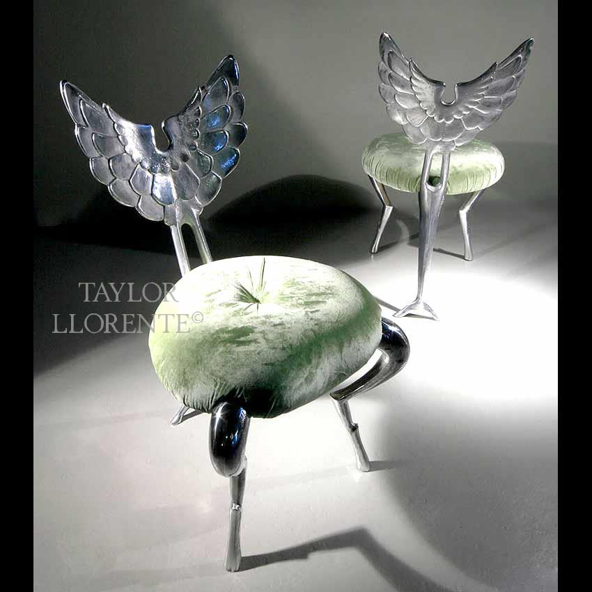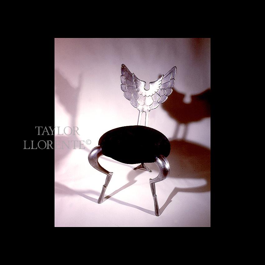 Chair frame in cast and polished bronze or aluminum with sculptural 'wing span' back supports in cast bronze or aluminum.