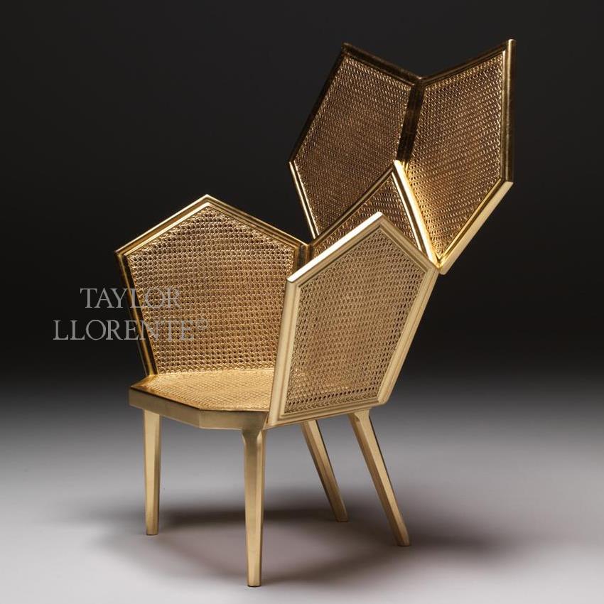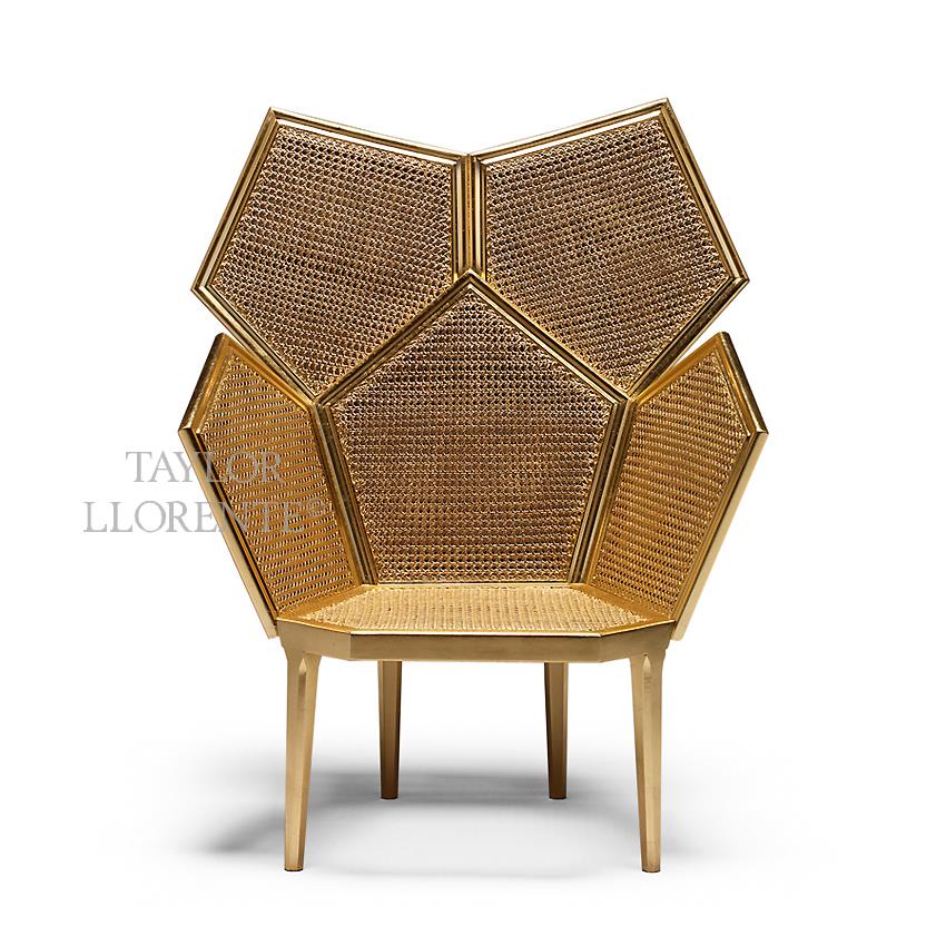 Luxury accent armchair created in eye catching gold leaf. This exceptional statement piece is created using hand crafted double cane.
