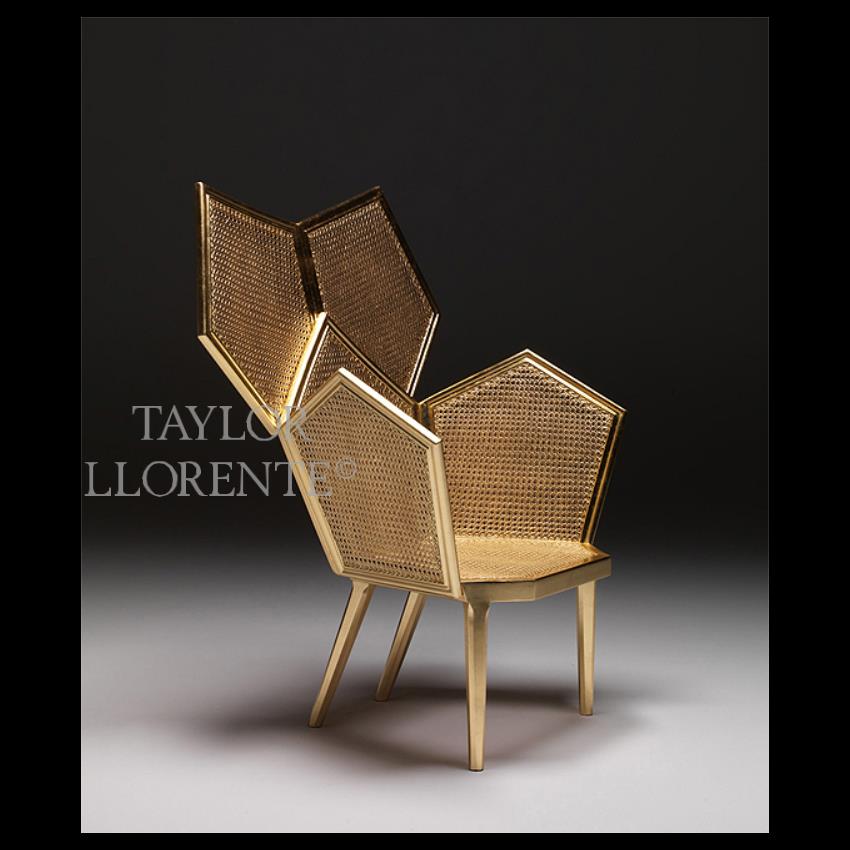 Luxury Gold Leaf Cane Accent Armchair