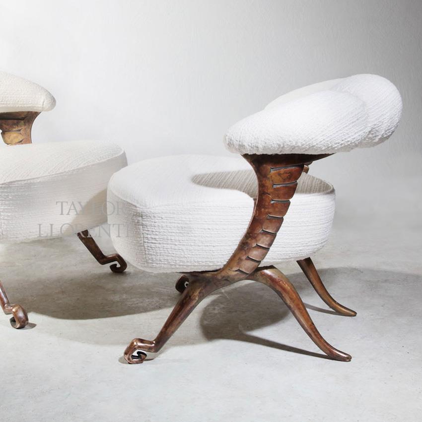 A unique accent chair with sculptural design created by hand in luxurious and opulent cast bronze.