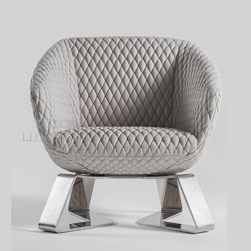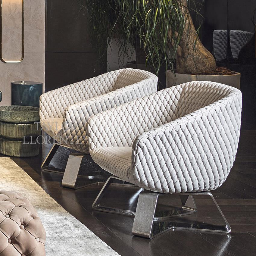 Armchair with bold and modern design ethos created luxury Italian leather and etched metal base.