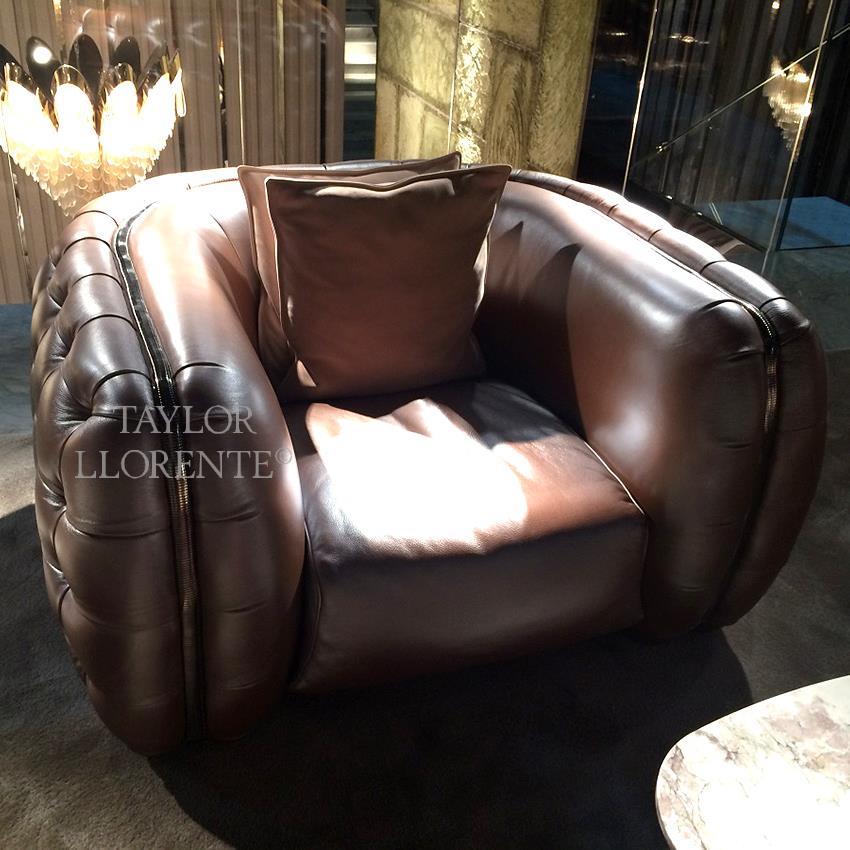 Exclusive design armchair created in deep buttoned luxurious Italian leather of the collection. A truly exceptional design armchair.