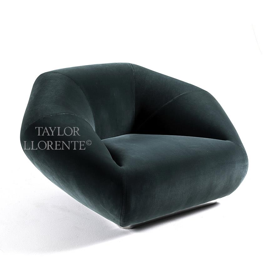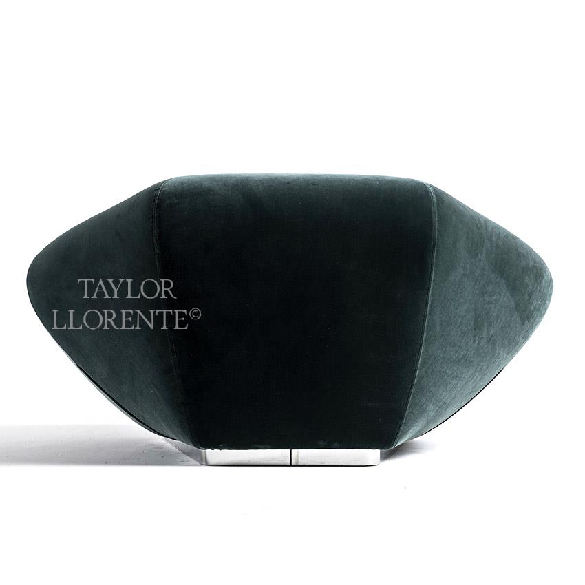 High end armchair with bold 'hexagon' design structure and fully upholstered in luxury velvet of the collection also available as a sofa..