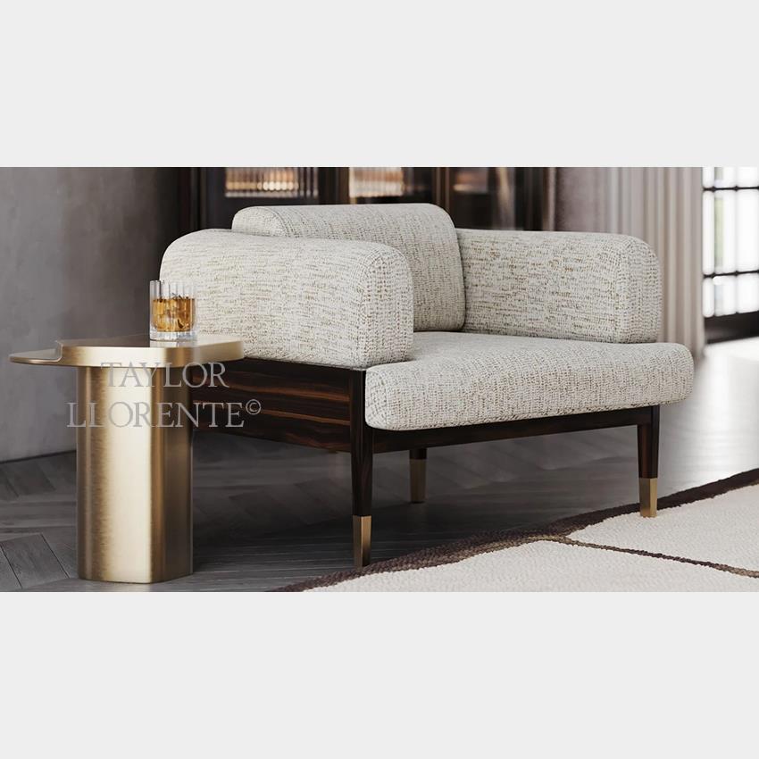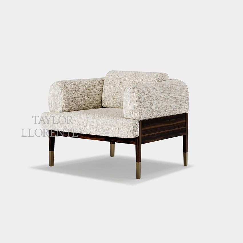Modern architectural armchair with frame in luxury macassar ebony wood.