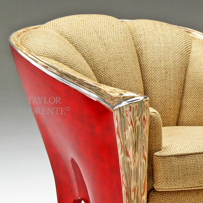 Main back of armchair in matt red lacquered stucco wood as pictured.