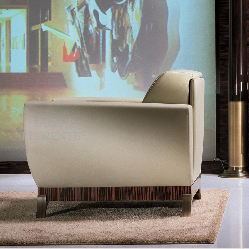 Modern architectural design armchair created in luxurious Macassar ebony wood, Italian leather and bronze metal.