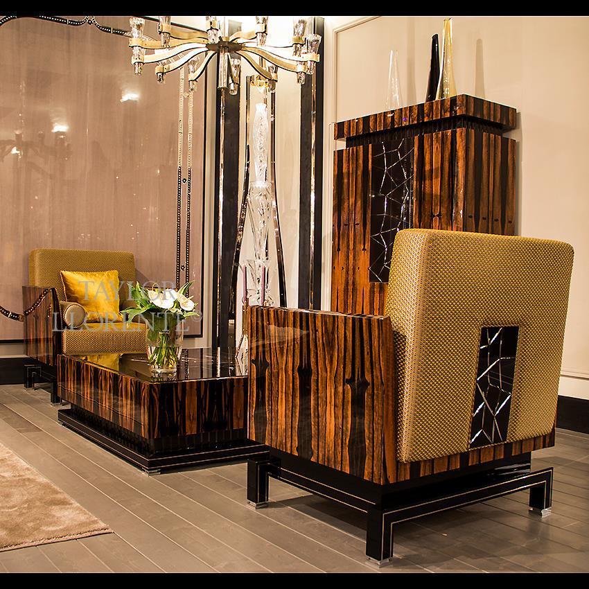 Also available without fabric and clients own fabric or leather with a down charge on request. Also available in other finishes and standard Macassar ebony on request.