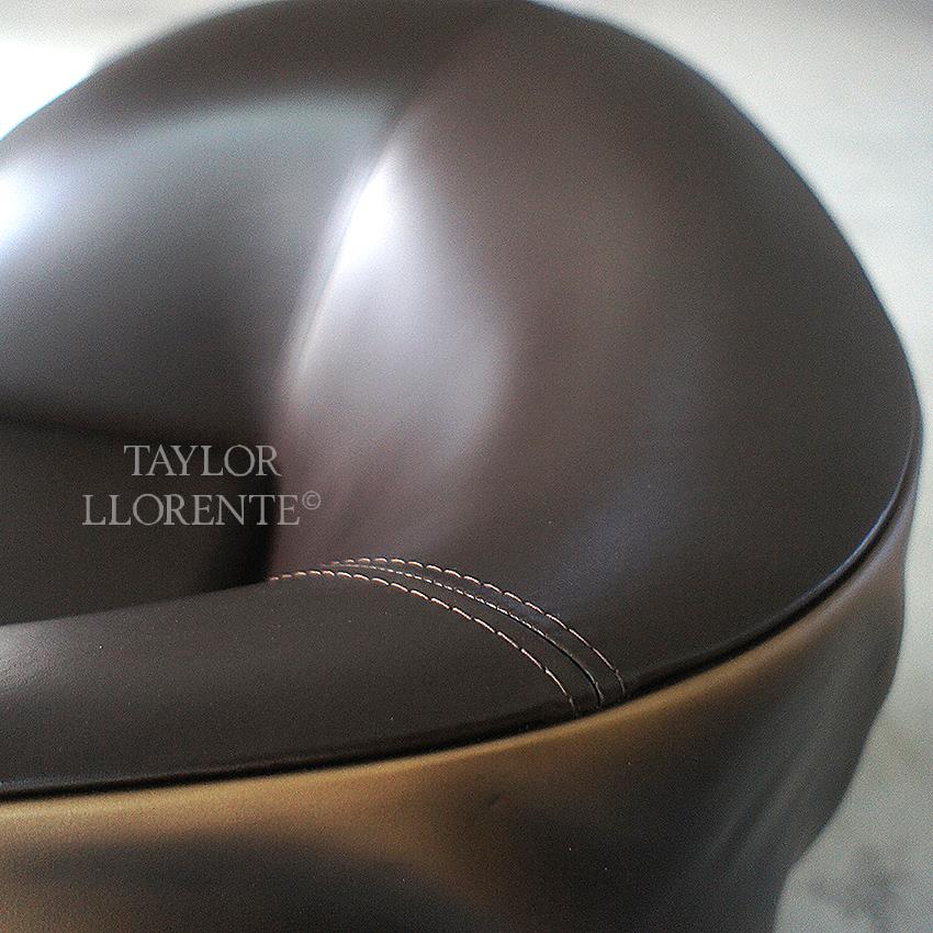 A unique armchair of sculptural design shape created in modern fiberglass with luxury upholstered seat and back.