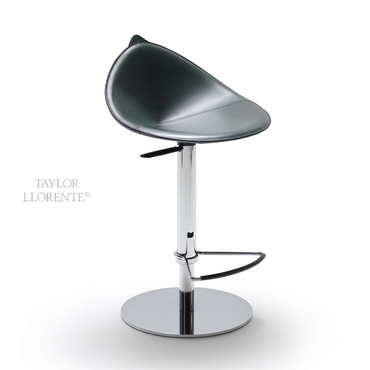 Height adjustable stool with adjustment lever also covered in full grain leather.