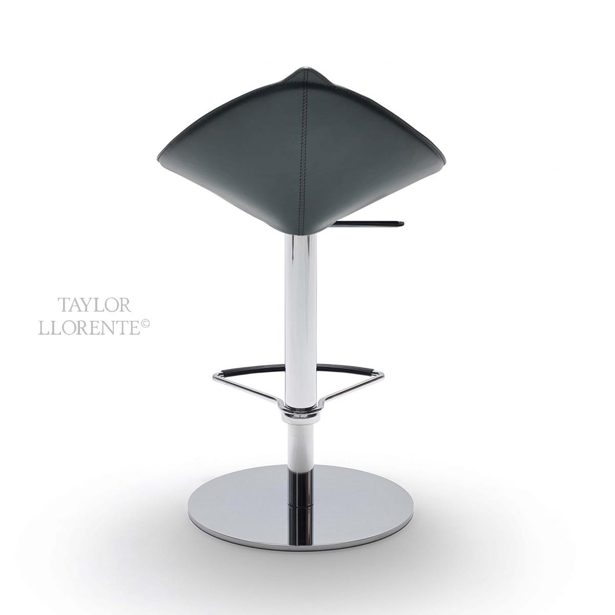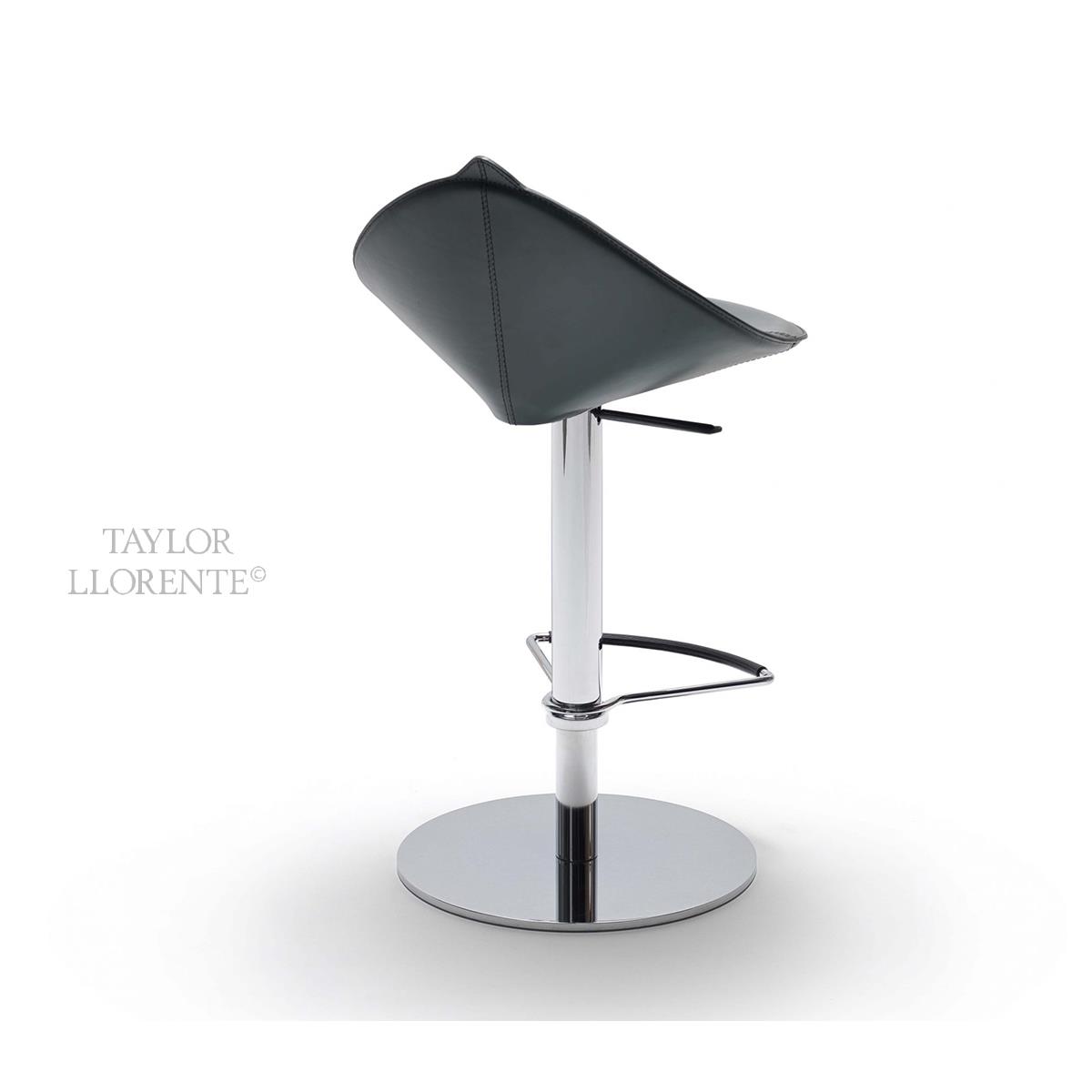 Modern design bar stool with architectural profile created in luxurious steel sand Italian leather. This stool has swivel base and height adjustable gas lift mechanism.