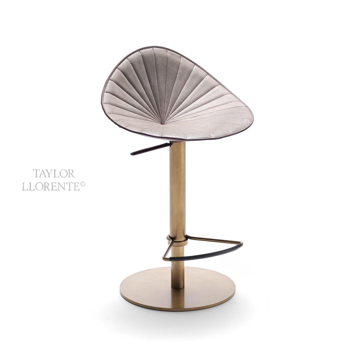 Steel column of and circular steel base of barstool available in the metal finishes of the collection.