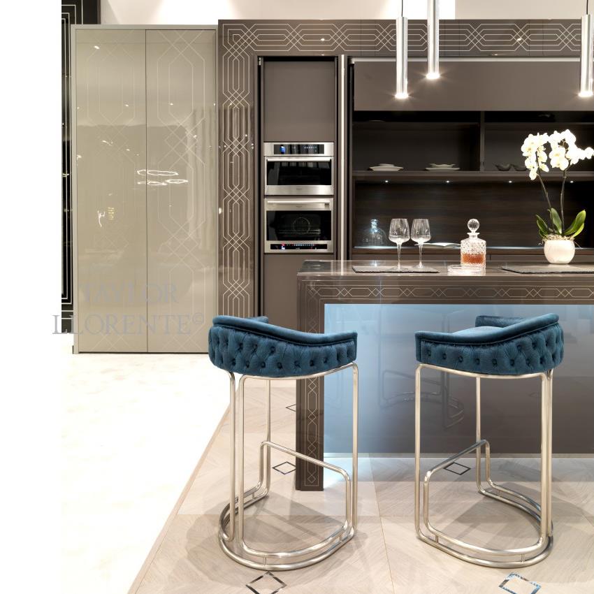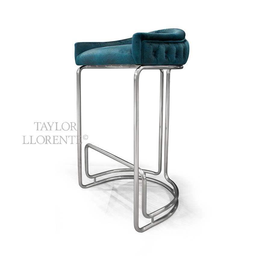 The frame of this stool is shaped and sculptured in tubular steel and finished in the metal finishes of the collection.