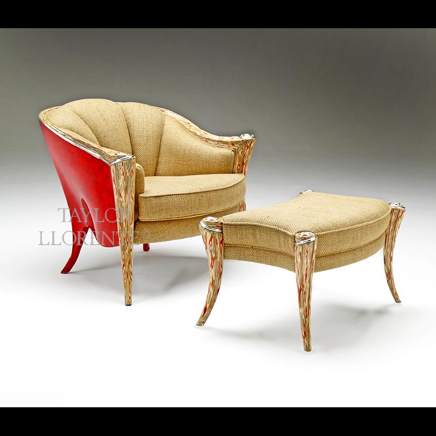 Artisan and sculptural footstool design created with unique resin and luxury upholstered seat cushion.