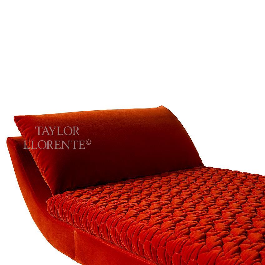A highly stylised and sculptural profile shaped chaise longue with stylised architectural bronzed metal legs.