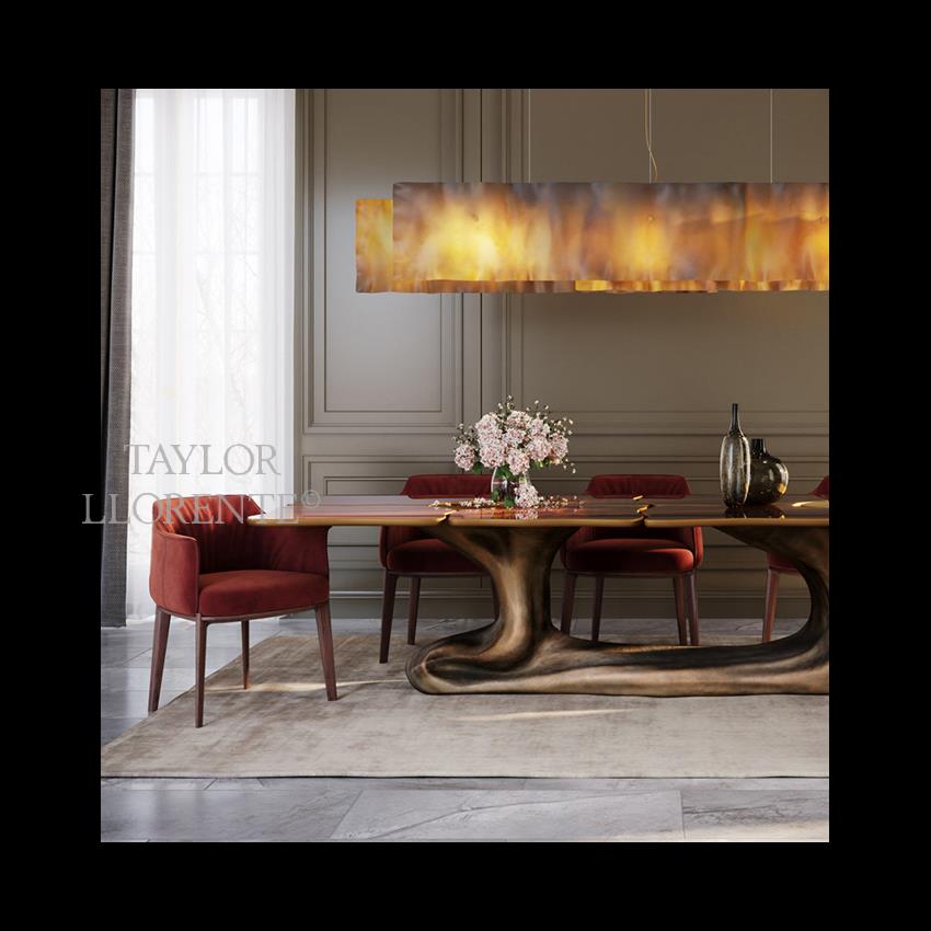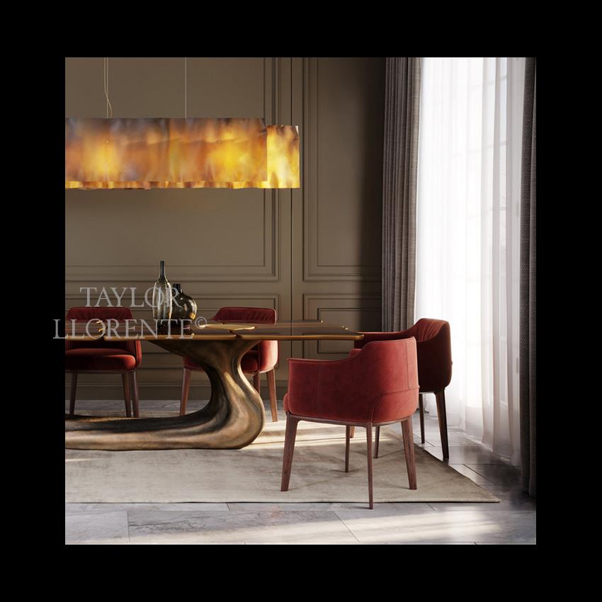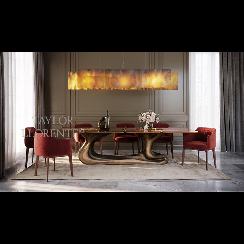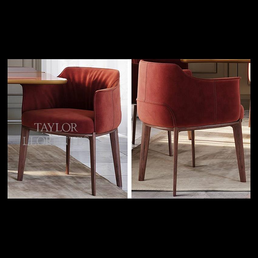 This modern luxury dining armchair is notable for its exceptional upholstery detailing and solid walnut frame.
