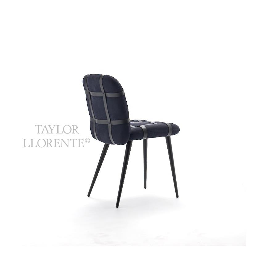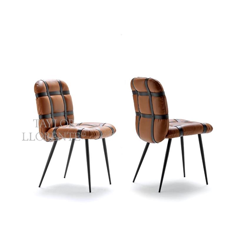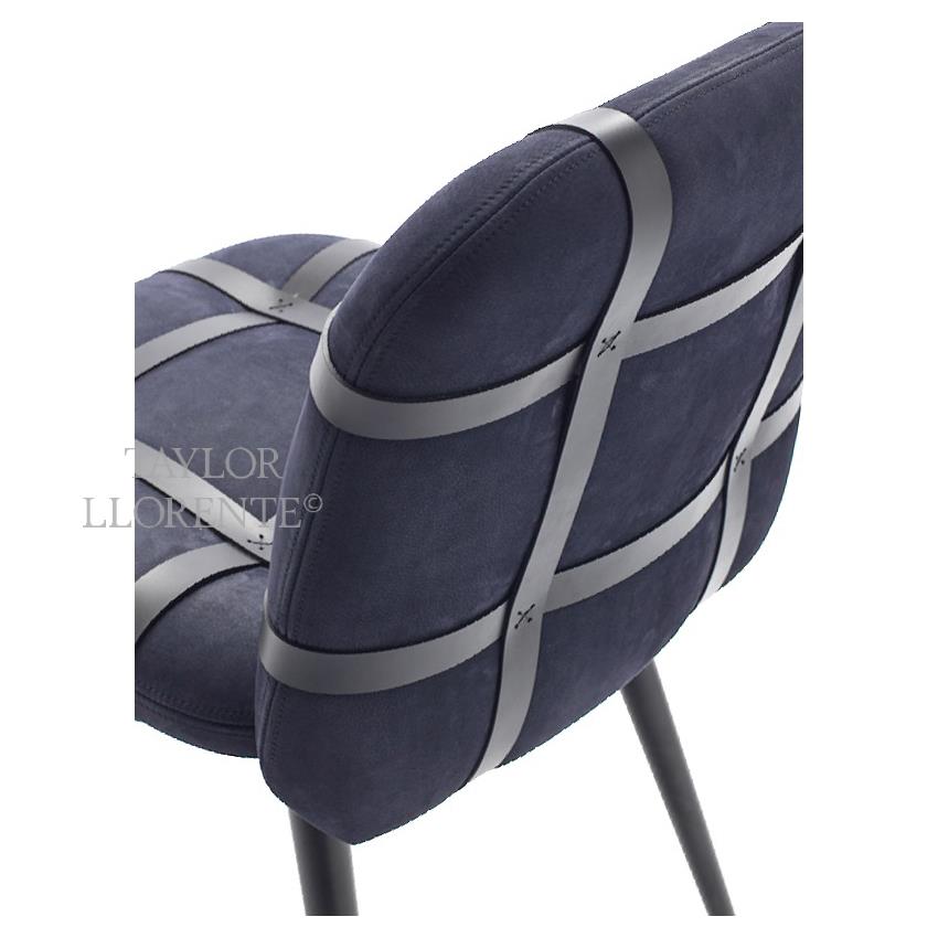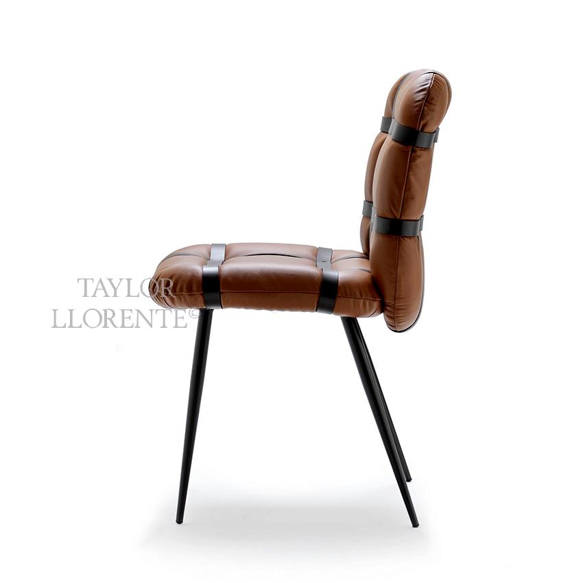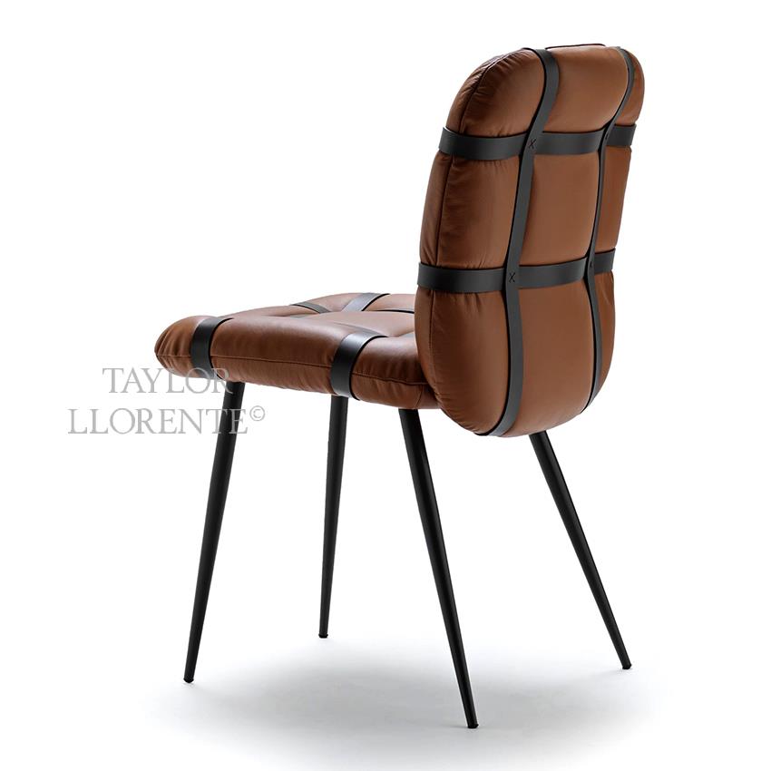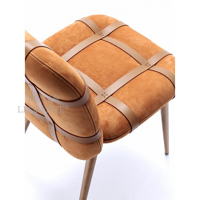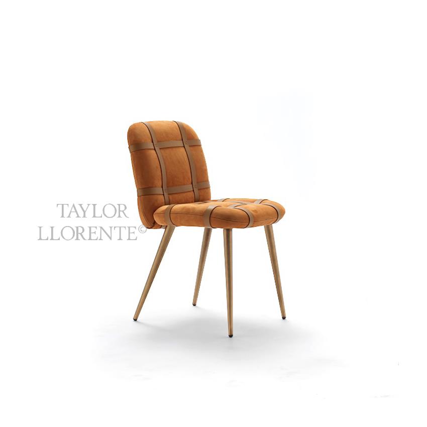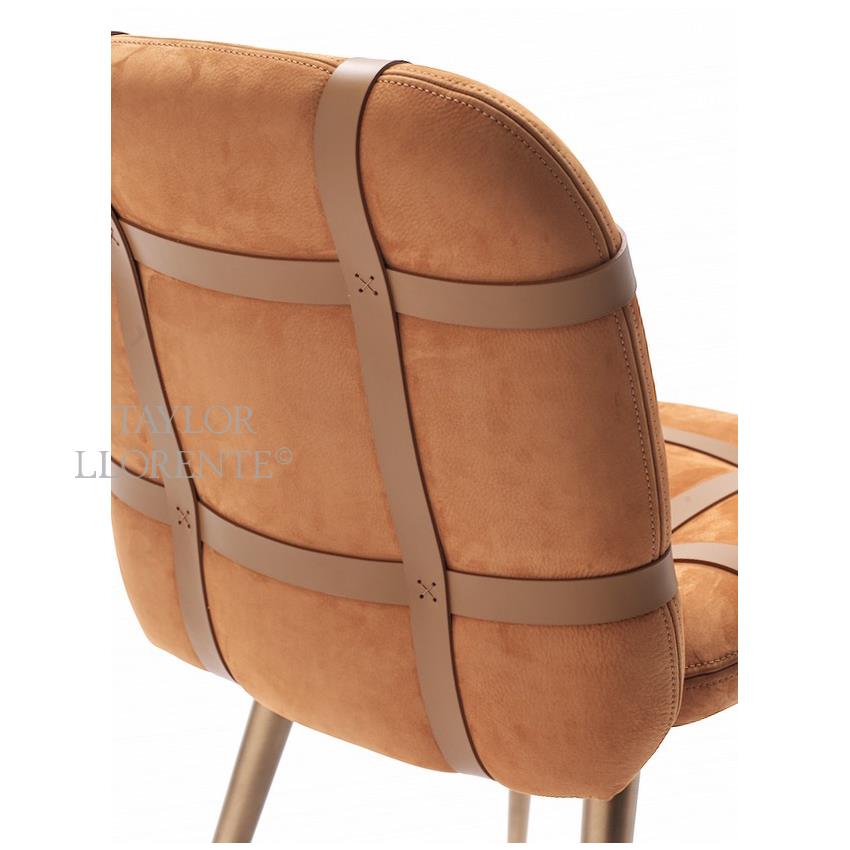 A modern design luxury dining chair created in soft leather upholstery with full grain hide leather mesh.