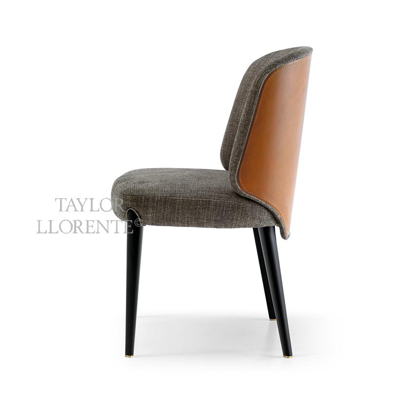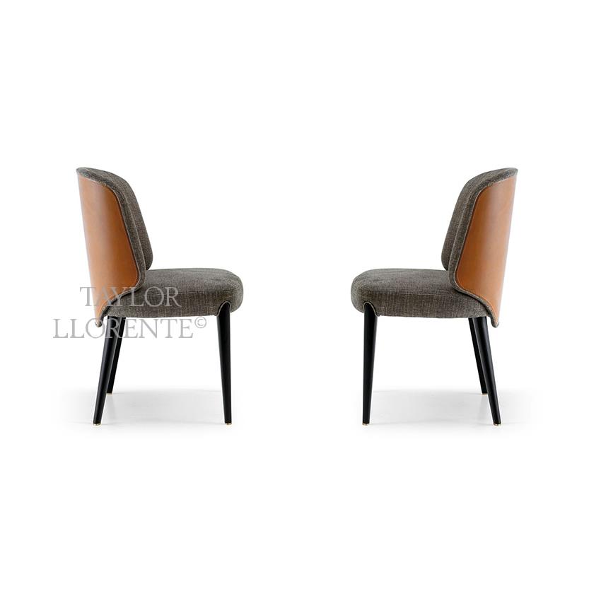 High end contemporary designer dining chair with backrest in luxurious hide leather.