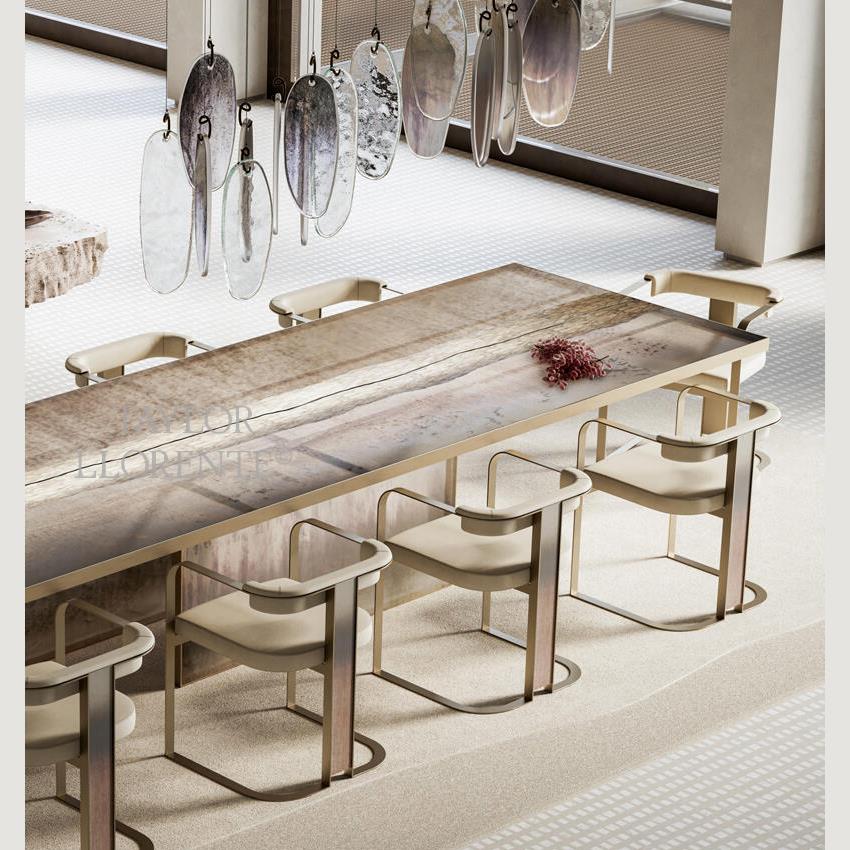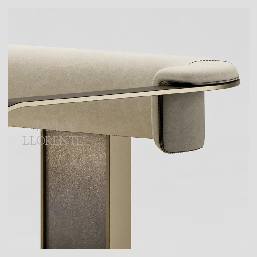 Smooth and architectural minimal metal structure finished in brushed brass.