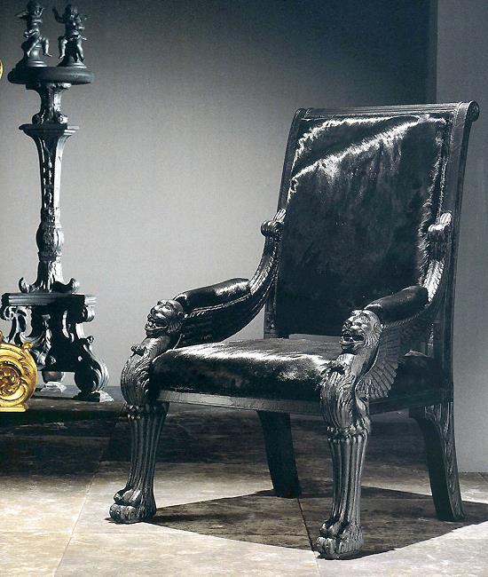 This luxurious throne armchair is hand carved with mythical creatures and in wood and can be created in the finishes of our collection.