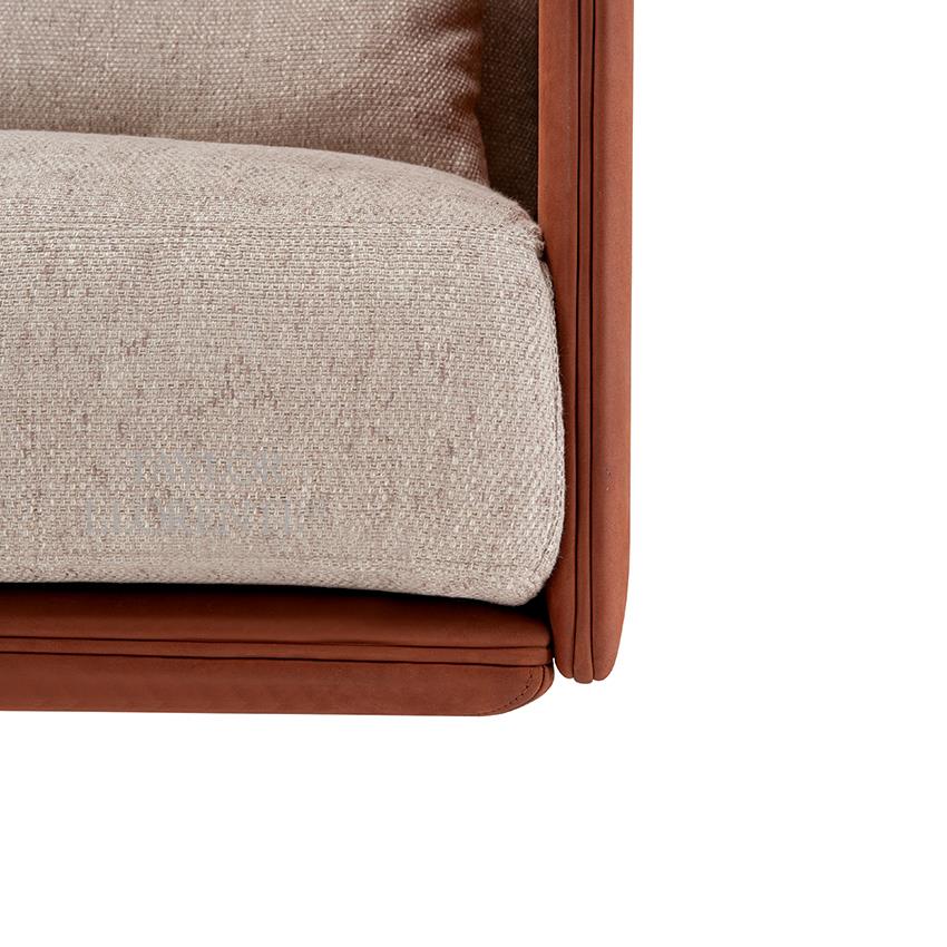 This modular design is created with a high specification wood structure frame covered in multi density rubber and finished as pictured in luxury nabuk leather of the collection The cushion seating elements are layered in memory foam and wrapped in luxury goose down for extra softness and a natural and relaxed aesthetic. Base of elements has steel feet as pictured with opaque black finish.