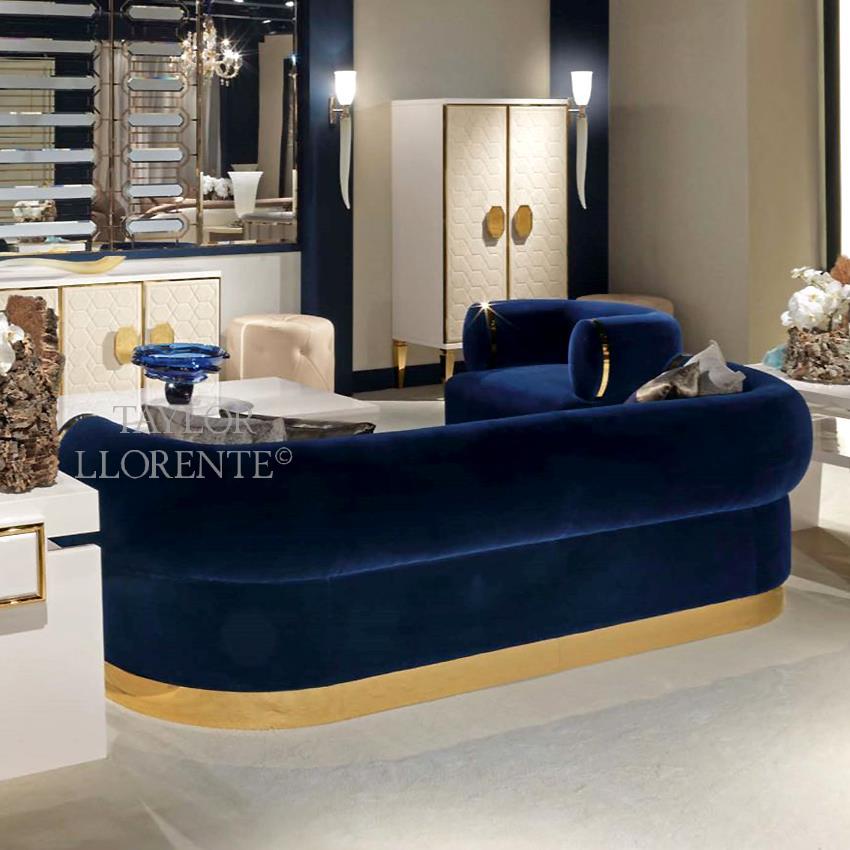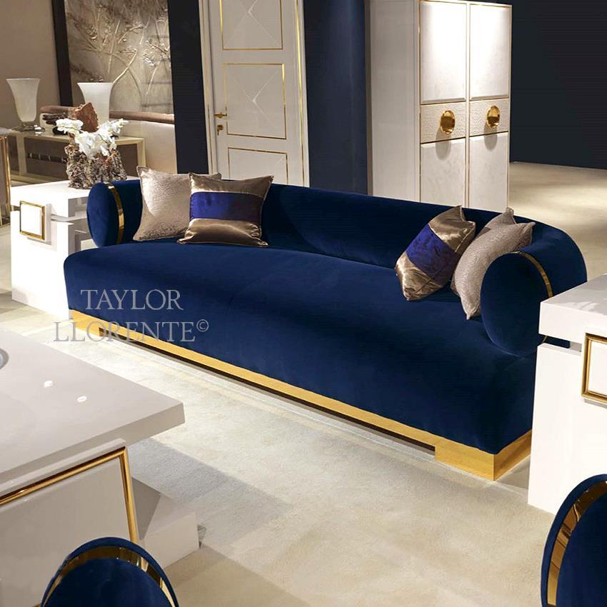 Sofa pictured is upholstered in Prussian blue velvet from the collection not included within the price shown. Priced in COM 10 meters of fabric required.