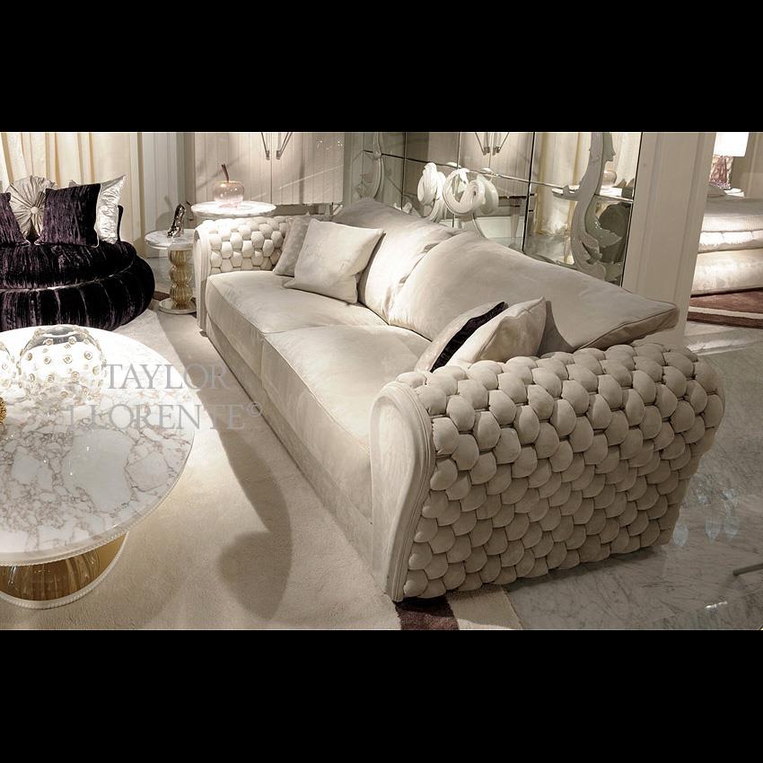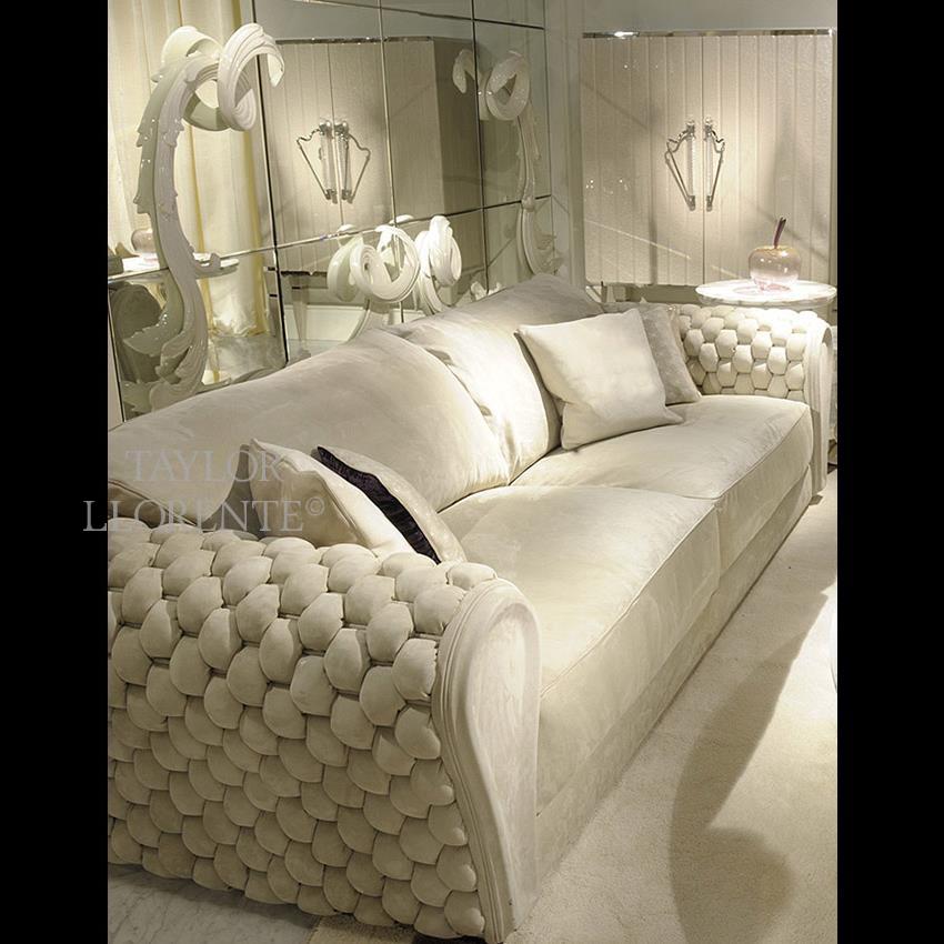 This unique luxurious sofa characterised by outstanding use of materials and meticulous production methods; the stylization and silhouette is emphasized by intricate upholstery methods (quilted and raised woven leather design).