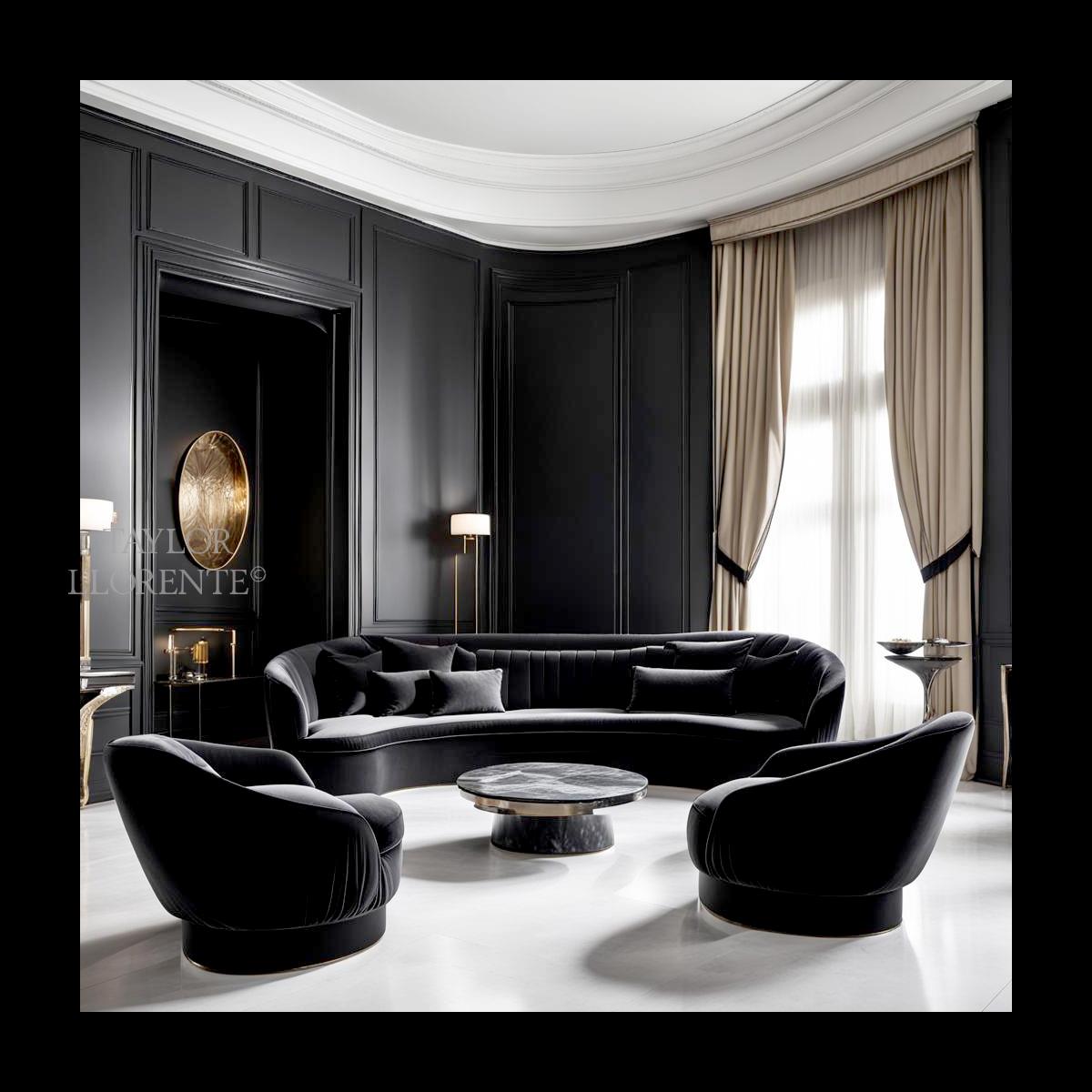 High end luxurious sofa characterized by its curved design upholstered in luxury velvet of the collection. matching armchairs also available as pictured.