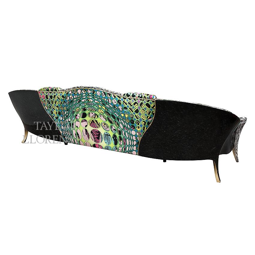High end sofa with luxurious and sculptural frame created in Venetian plaster stucco. Handmade sofa of exclusive design merit.