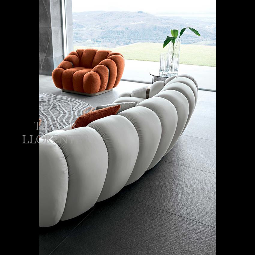 This contemporary design is available as sofas to include various sizes (from 2 seater to 4 seater) and the sofas are available in a ‘straight’ design and or a ‘curved’ design. The sofa priced below is a 3 seater.