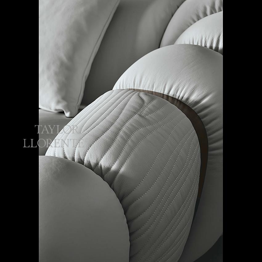 High specification upholstery methods and construction. Sofa seat and sides with double stitching in polyurethane foam luxuriously wrapped in down feathers.