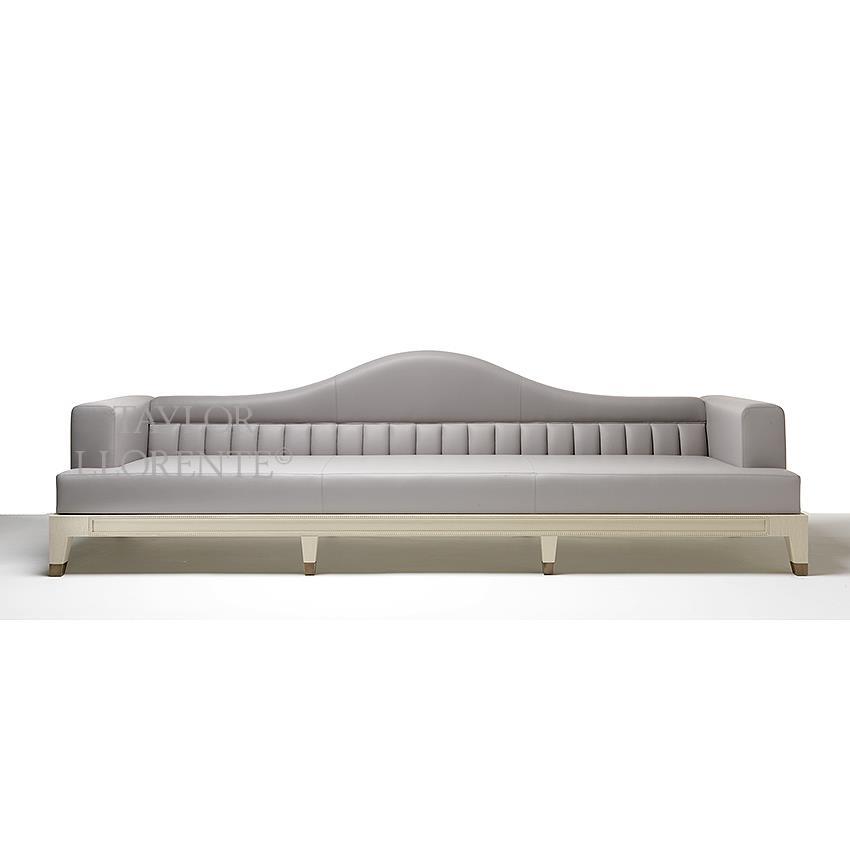 Luxury sofa created with a fusion of neoclassical style and modern architectural silhouette with carved luxurious neoclassical sofa base and legs as pictured.