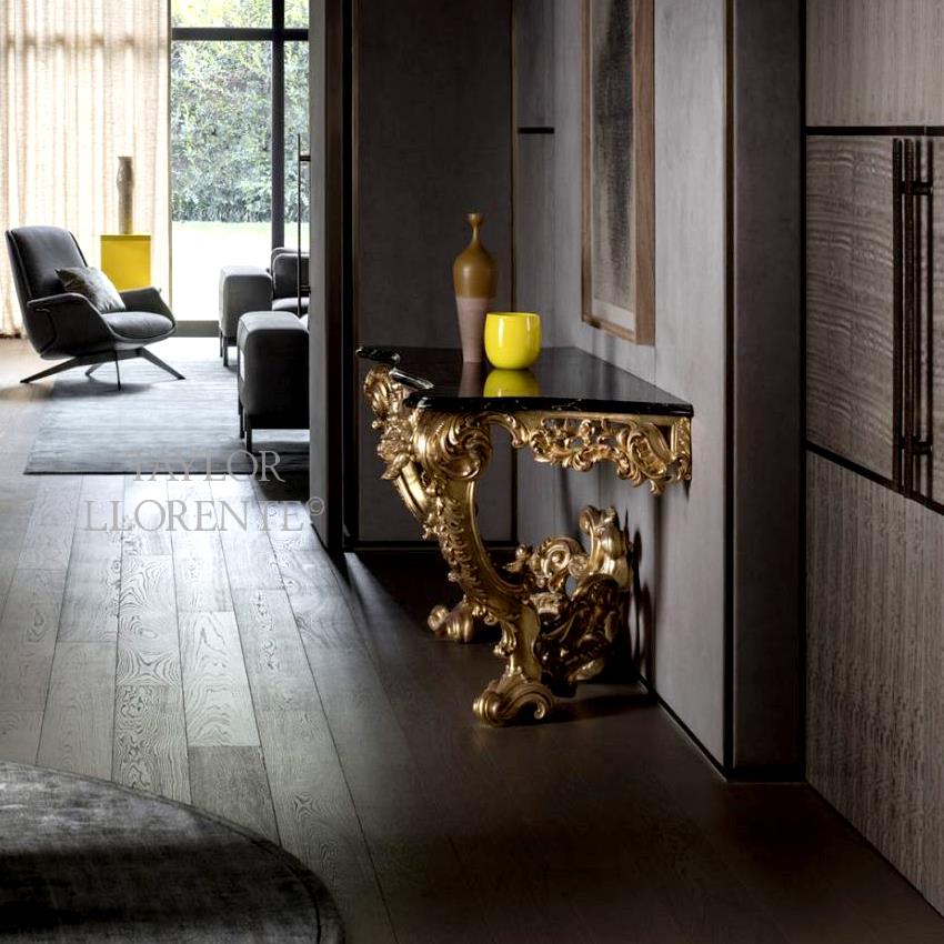 An exclusive luxury console table carved in the Italian baroque style and covered in hand applied gold leaf. A truly magnificent work of art.