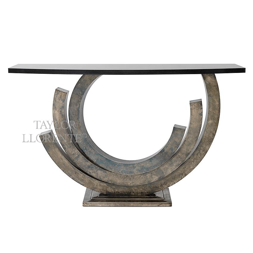 The console can be finished with various processes to include vintage silver, bright nickel or satin brass.