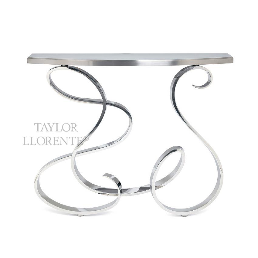 A truly fluid sculptural console table of curvaceous design created in luxurious hand polished steel.