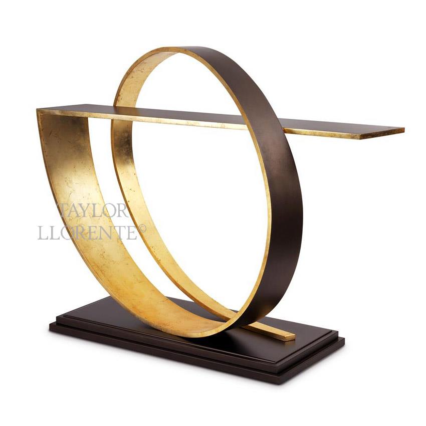 Sculptural artisan console table created in luxurious hand forged steel finished in gold leaf and bronze patina as pictured.