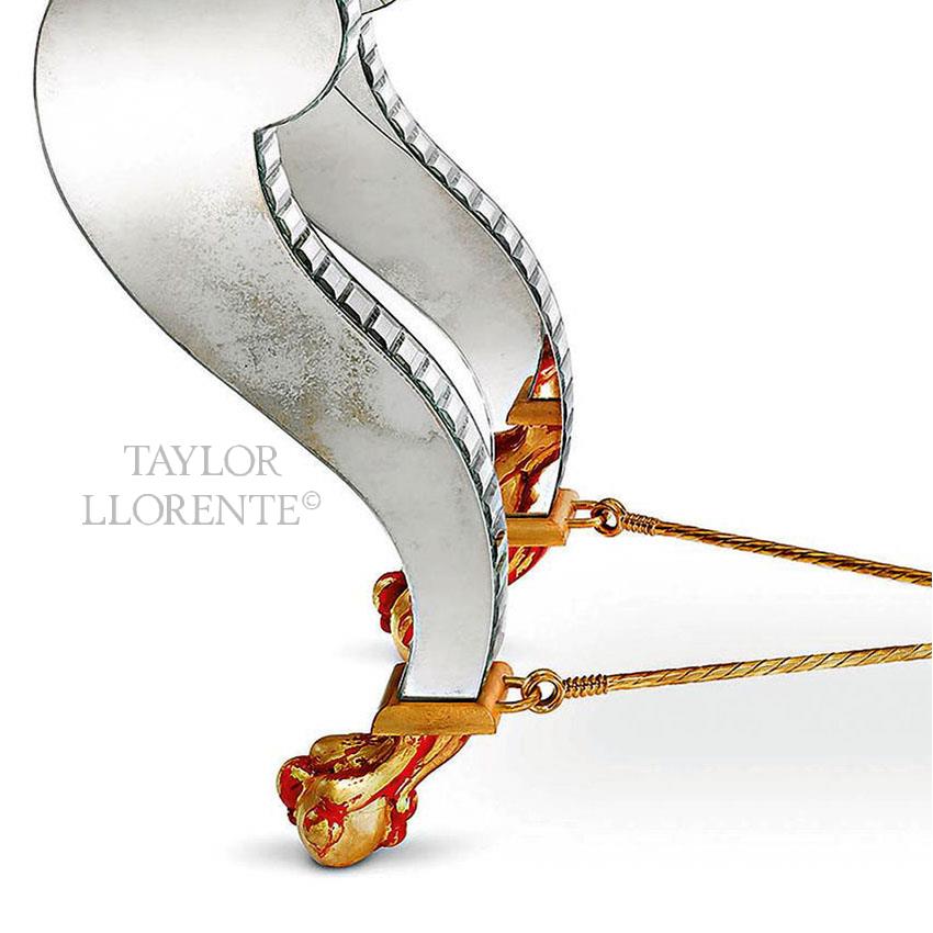 Part of an exceptional and distinguished collection of Venetian antiqued mirror furniture with academic design references.