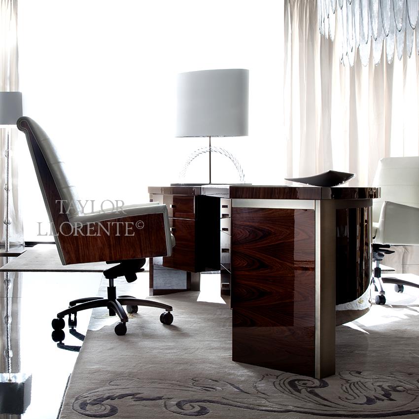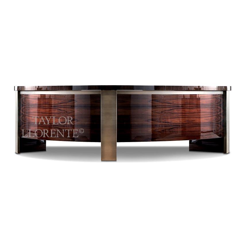 High end executive office desk created in luxurious rosewood and bronze metal.