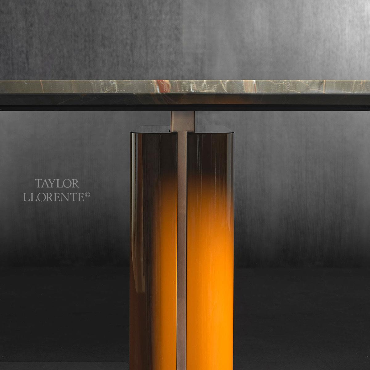 Table top available in marble, Kalu wood or lacquer colours RAL. Matt or gloss finish.