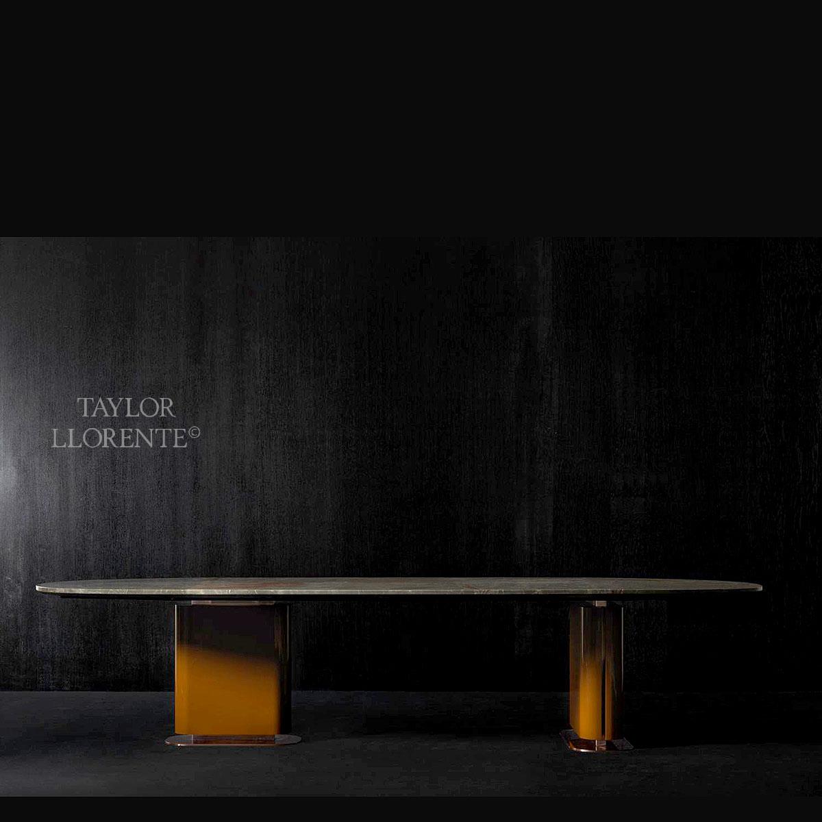 Table metal structure and detailing available finished in brass, bronze, burnish bronze or copper.