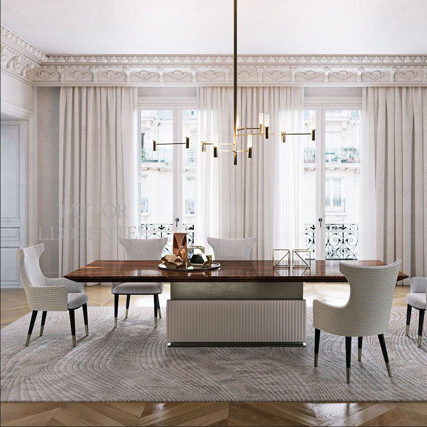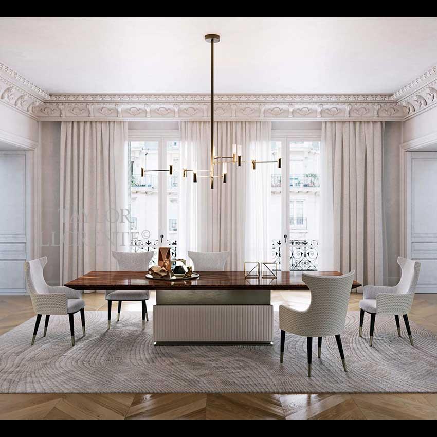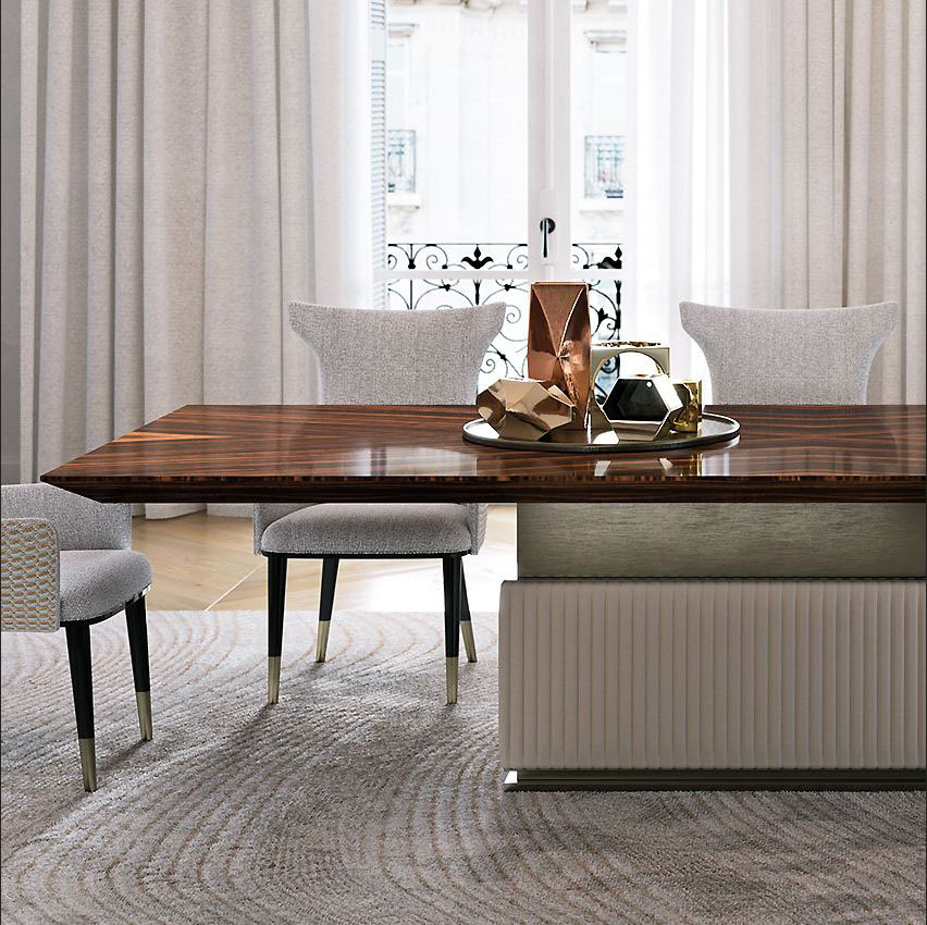 Table top can be in American walnut, smoked oak, eucalyptus frise or macassar ebony. It is also possible to create with a marble table top pricing on request.