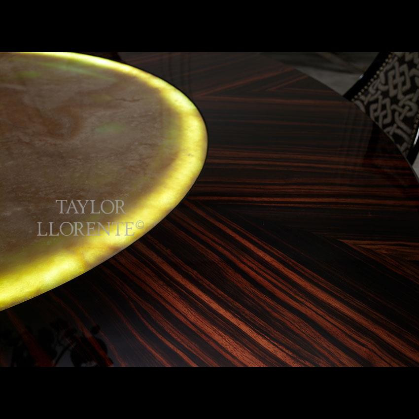 Insert dining table top with backlit onyx as illustrated.