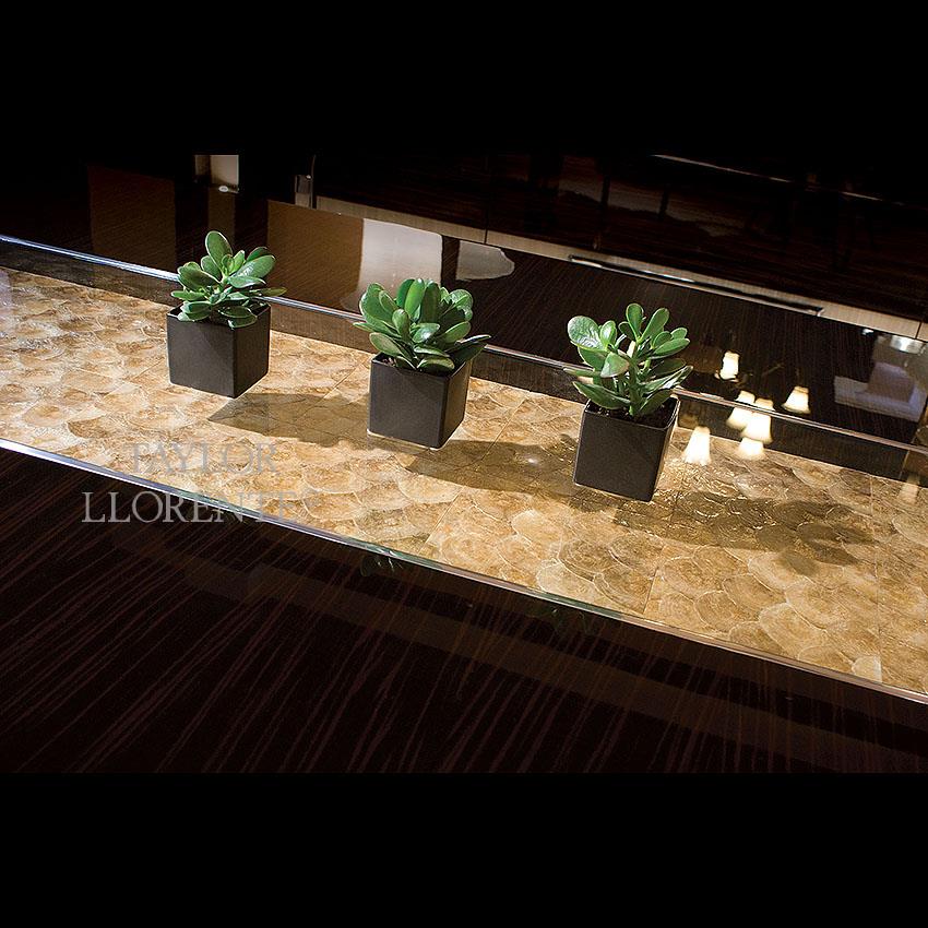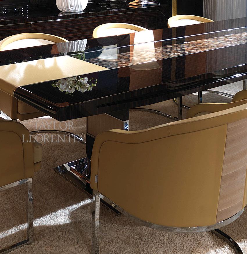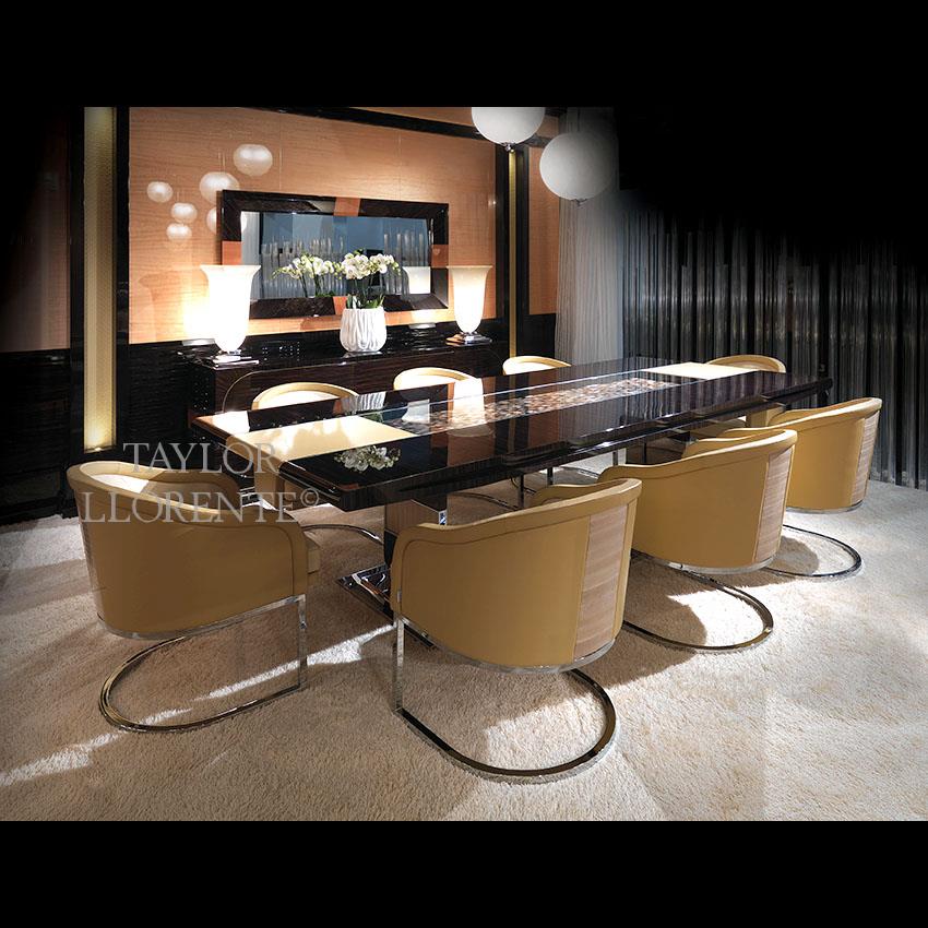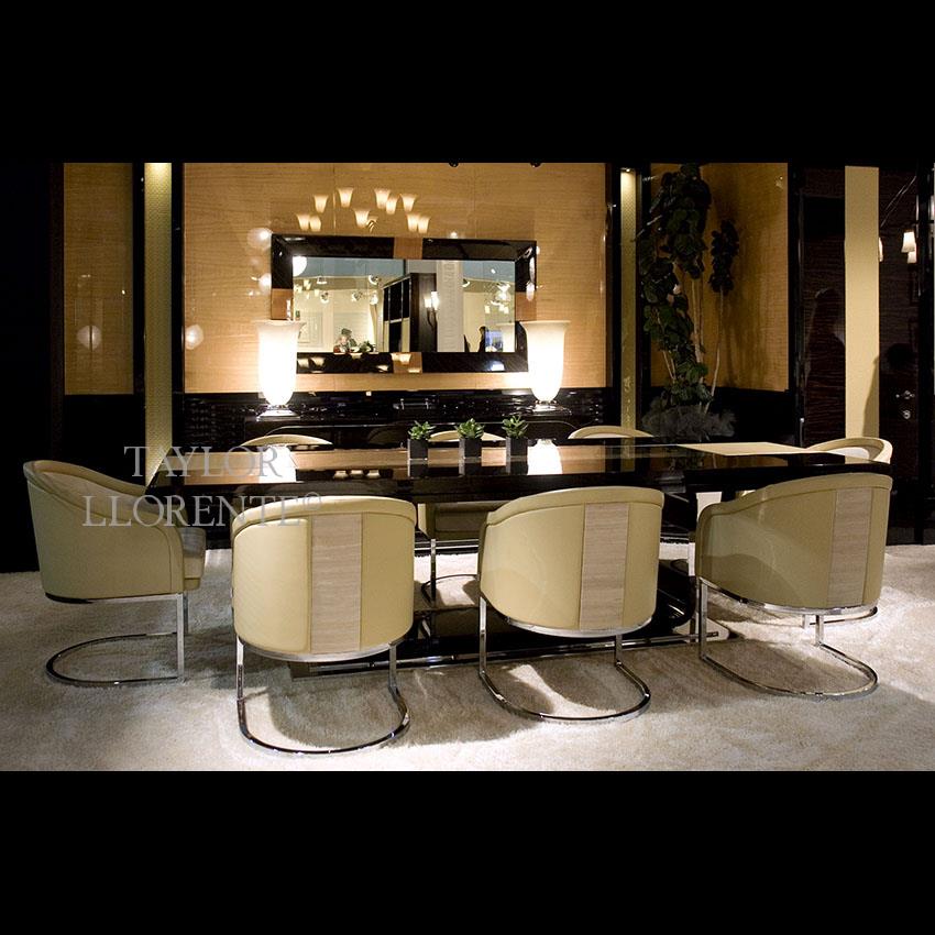 Other finishes for this dining table by request. Also available in french satin finish with a down charge.