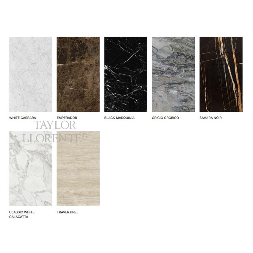 Other marbles in the collection include: White Carrara, Emperador Marron, Nero Marquina, Giorgio Orobico, Sahara Noir, white Calacatta and or Travertine. Pricing on request.