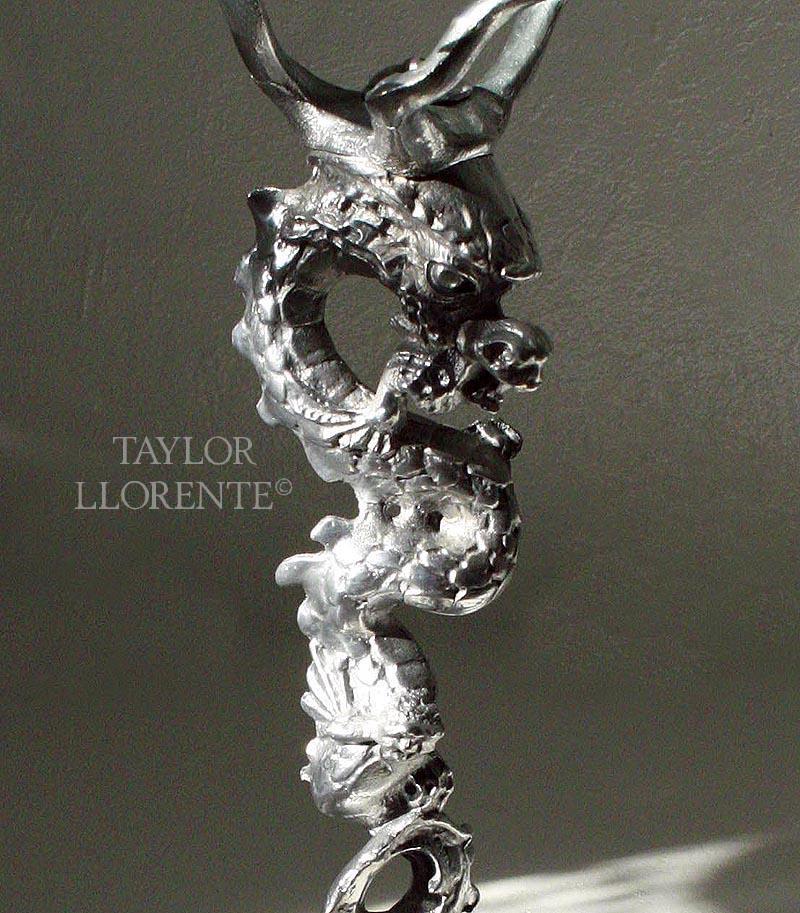 The design is a stylised dragon rising on its tail from the sea.