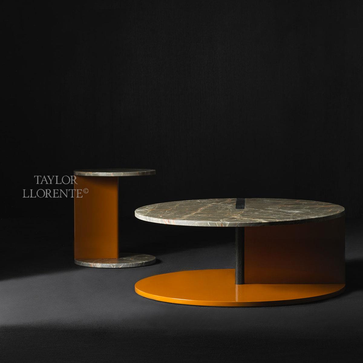 Table top, base plate and thick vertical support available in combination of the following finishes. Lacquered wood RAL colour, Wood veneers, Marble or Lacquered Metal colour bronze, pewter, copper or black). Matt or shiny finish.