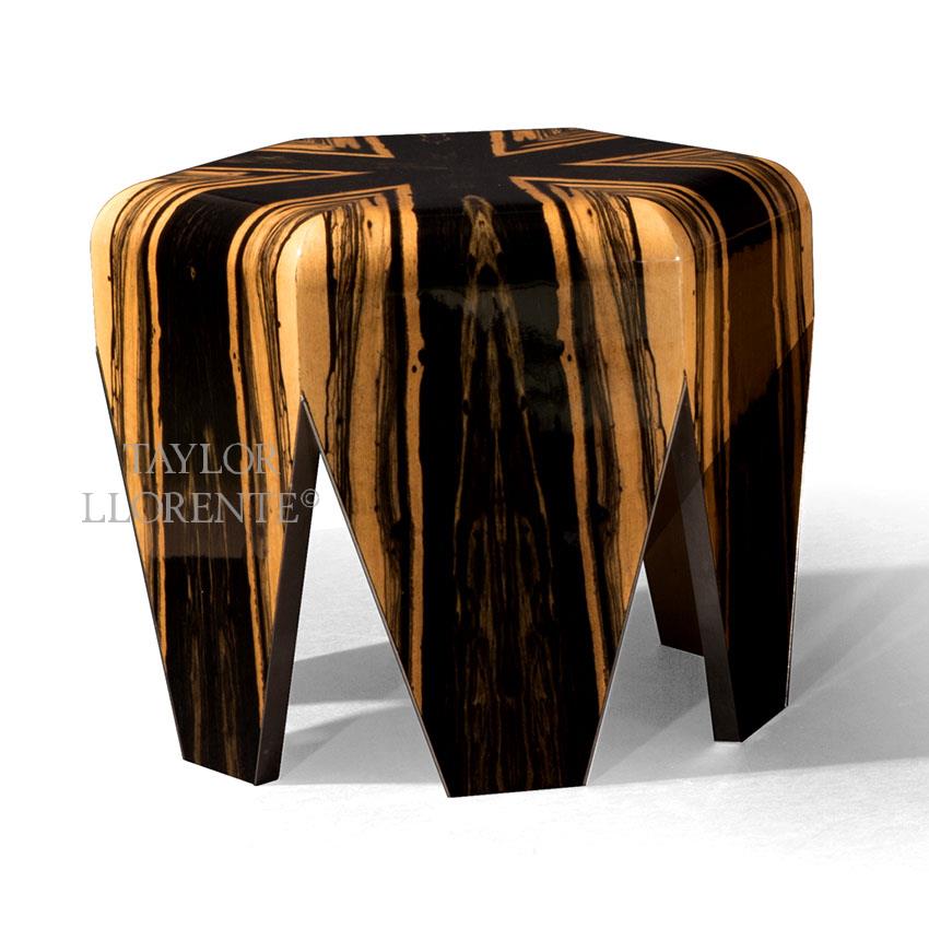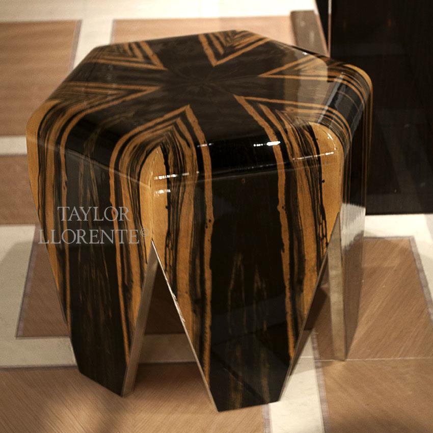 A striking side table created in luxurious and unique white ebony wood in a 'sunburst' design.