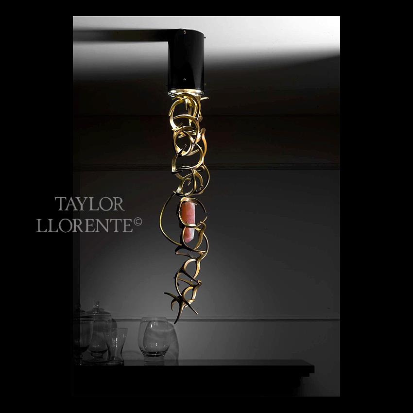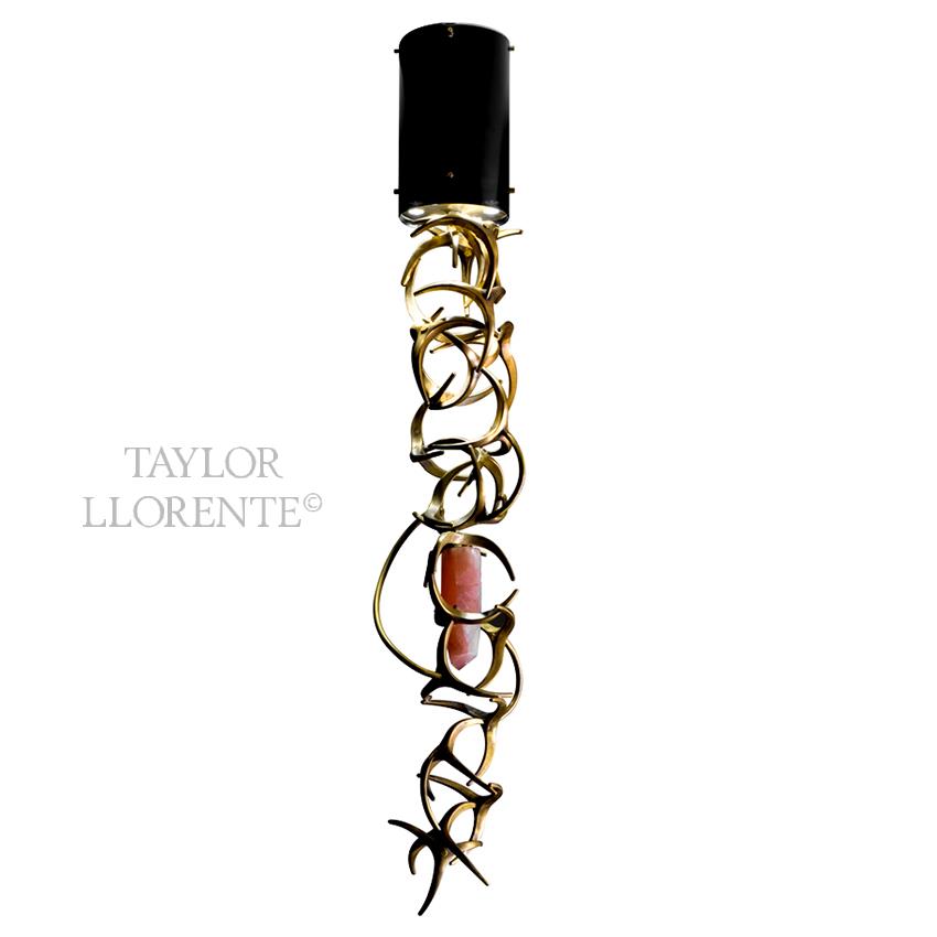 High end chandelier sculptured in Luxury solid bronze with pink quartz rock entwined.