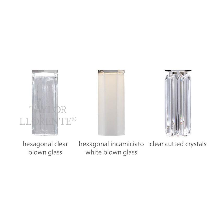 Glass elements: in either clear cut crystals or white blown glass (as per image and price below).
