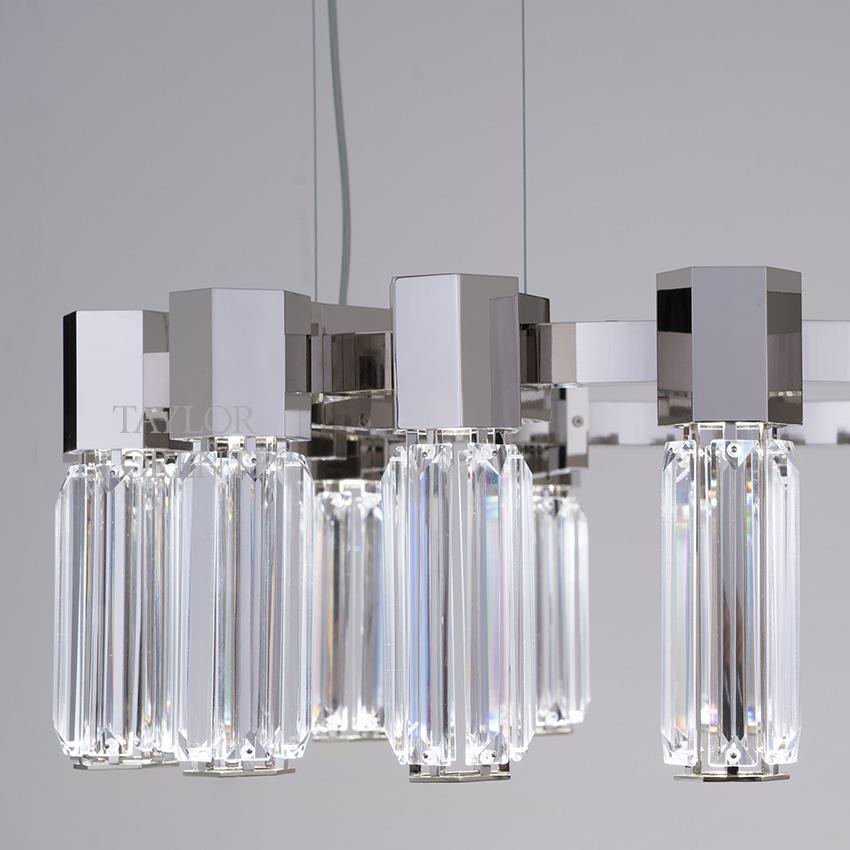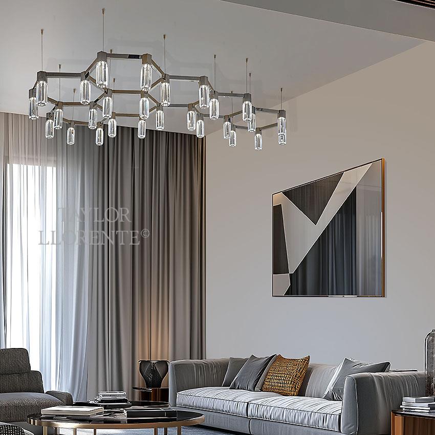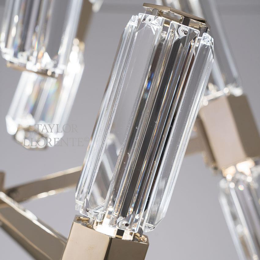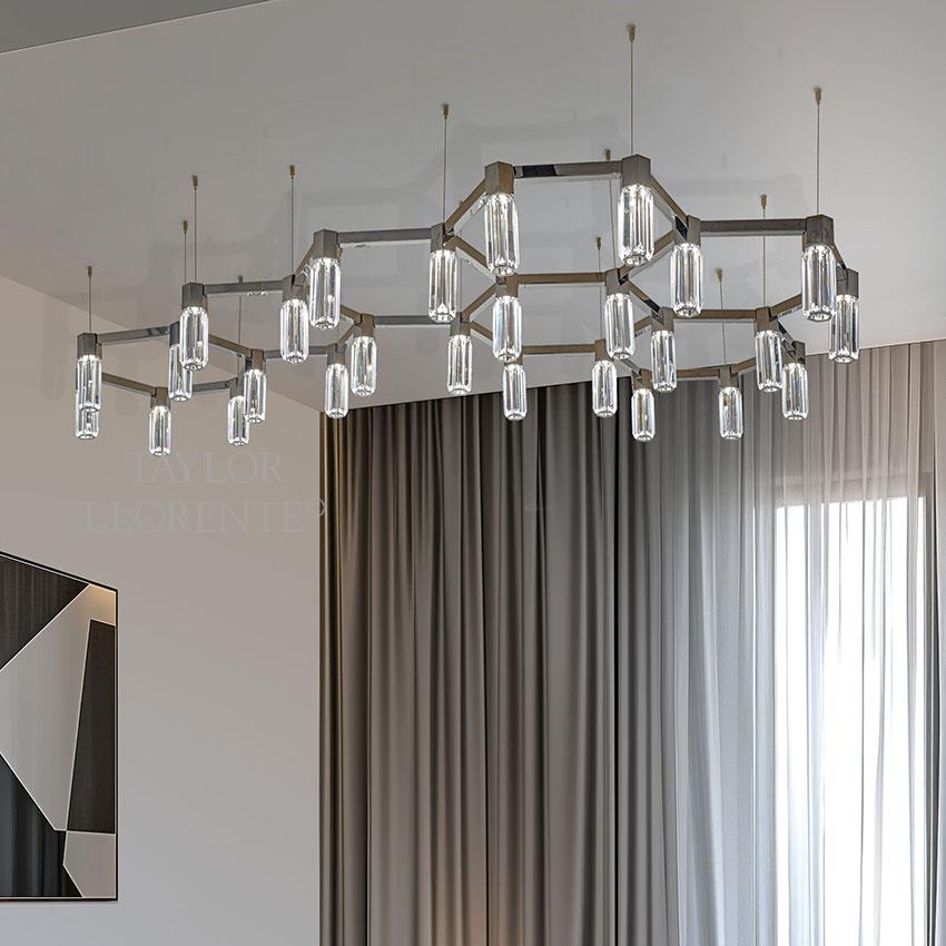 A luxurious contemporary design chandelier of architectural profile and silhouette.